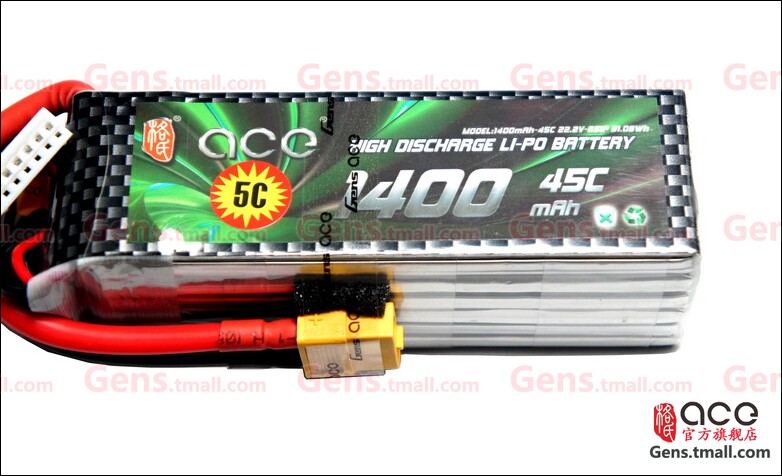 ACE 1400MAH, 22,2, 45C Litthium Poly Actered Back