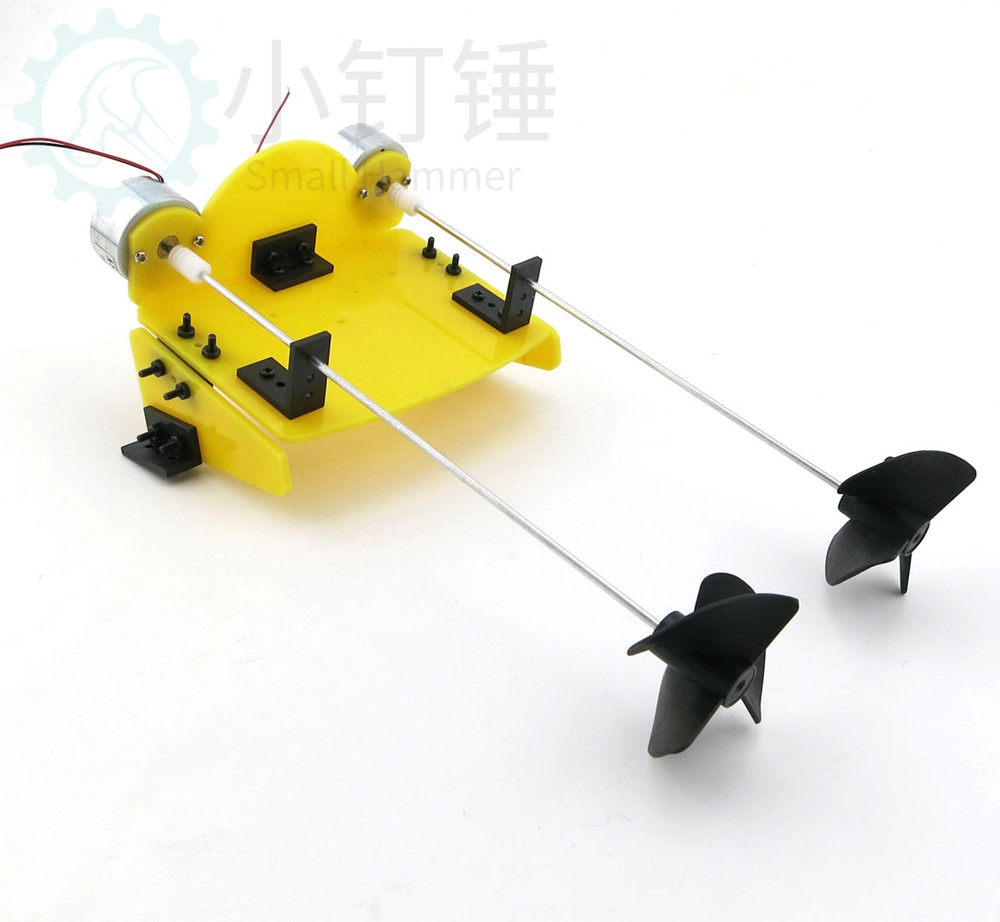 Используйте пенные платы, которые можно увидеть повсюду (также можно использовать корпус других материалов), создайте корпус, установите этот модуль на корпус (можно исправить различными средствами, такими как винты или лента), чтобы гарантировать, что пропеллер находится все или частично ниже поверхности воды, и может использоваться после мощности (батарея должна быть приобретена здесь отдельно).