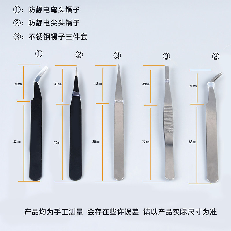 | Цвет: | Пинцет из нержавеющей стали, комплект, 3 предмета, Антистатические тарелки локтя 1, Анти -статический прямой 把 1 |