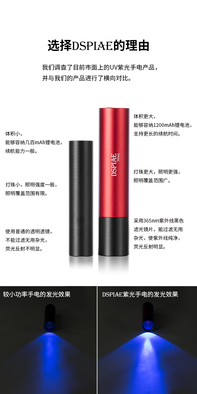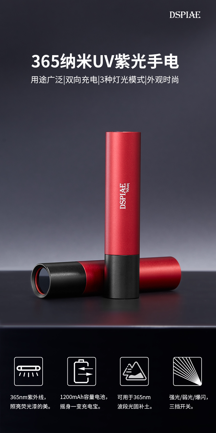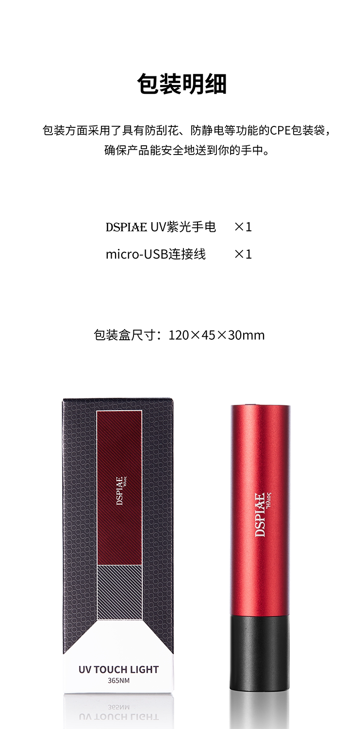 Стальное небо DSPIAE/Dispai UV-T 365NM UV Purple Light Flashlight можно использовать в качестве зарядного сокровища
