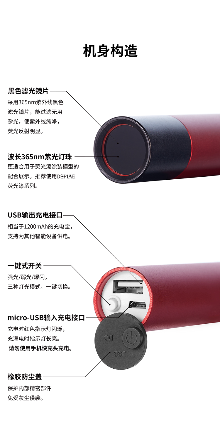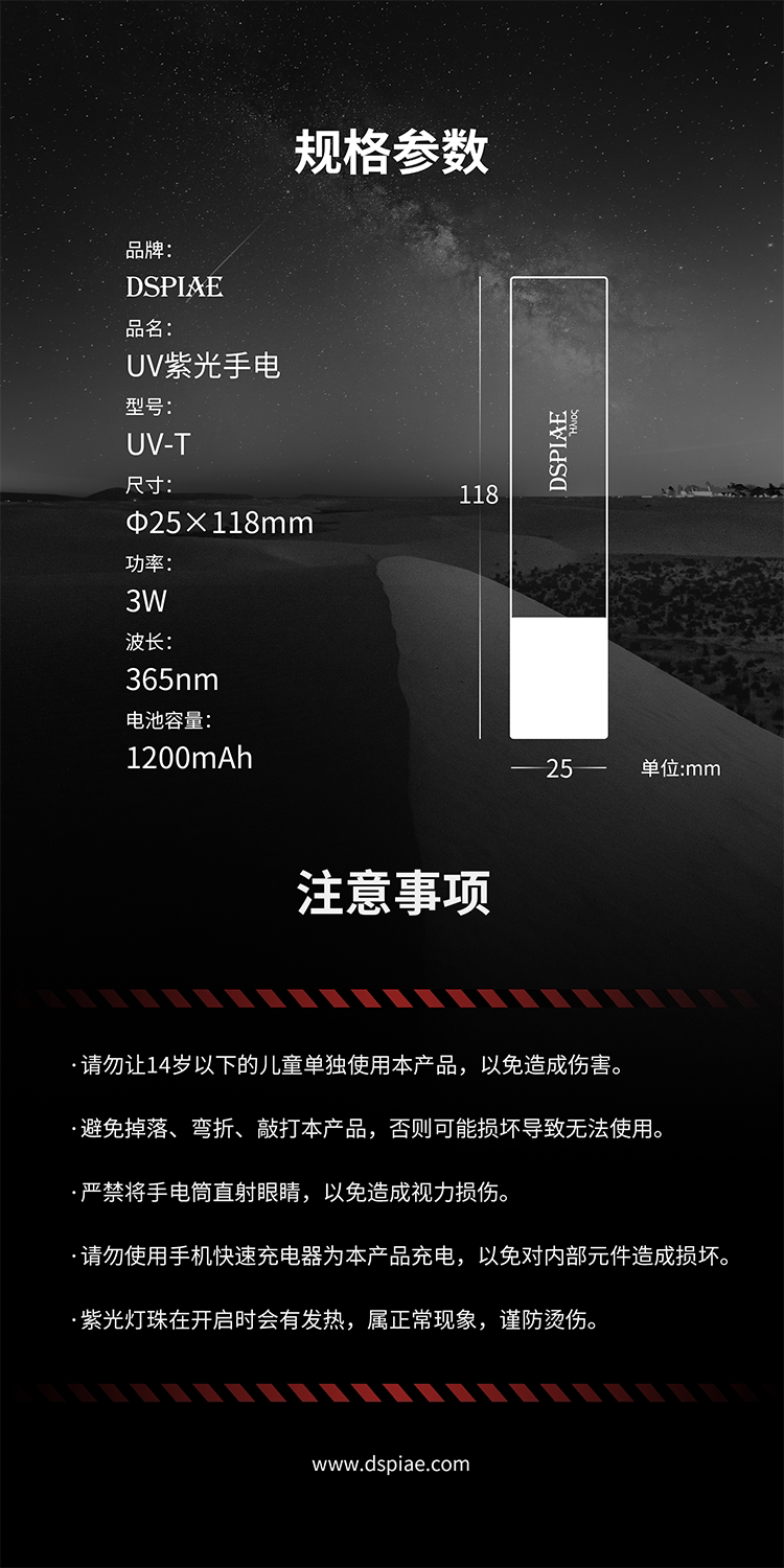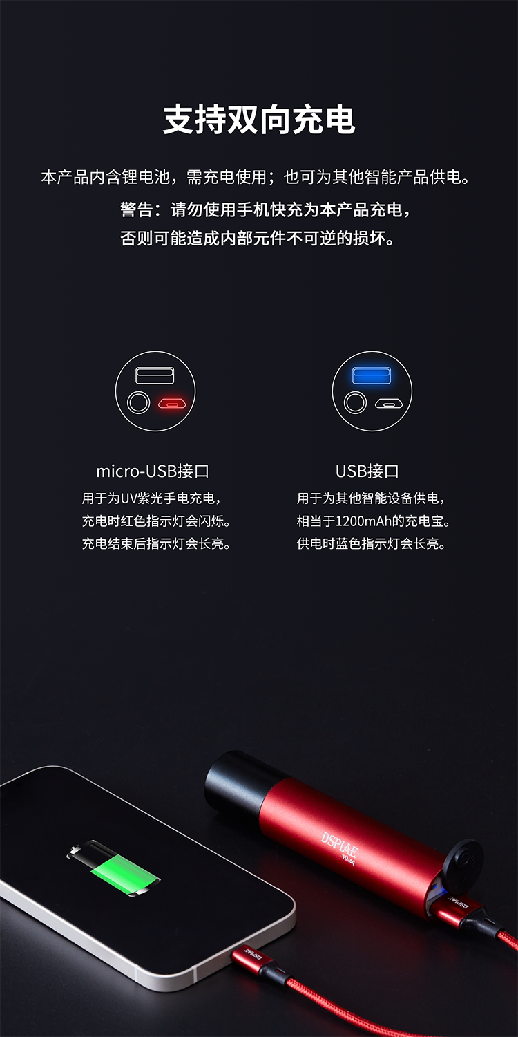 Стальное небо DSPIAE/Dispai UV-T 365NM UV Purple Light Flashlight можно использовать в качестве зарядного сокровища