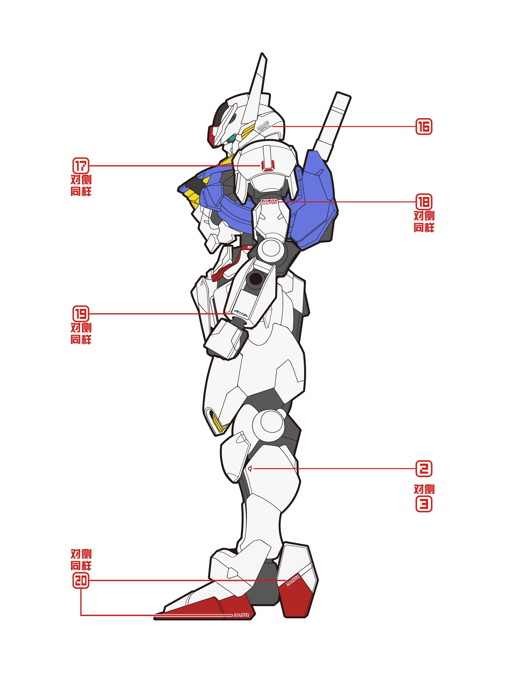 Три красных поля HG Ведьма Меркурия Воздушный дух ветра Красно-синяя модель Водная наклейка