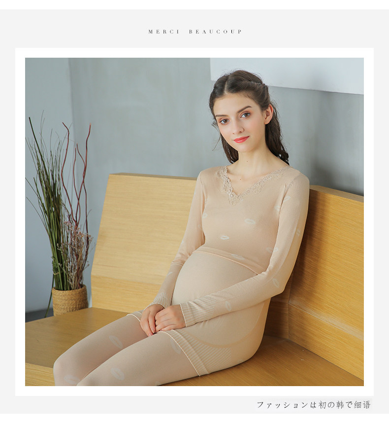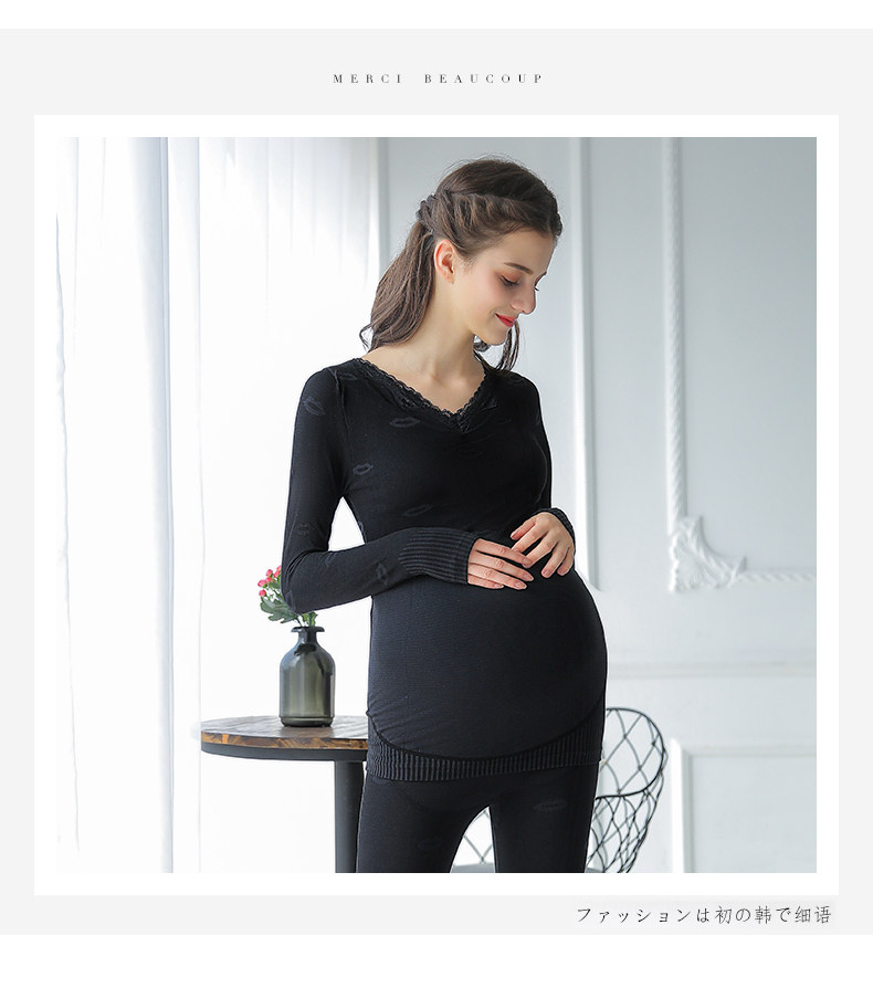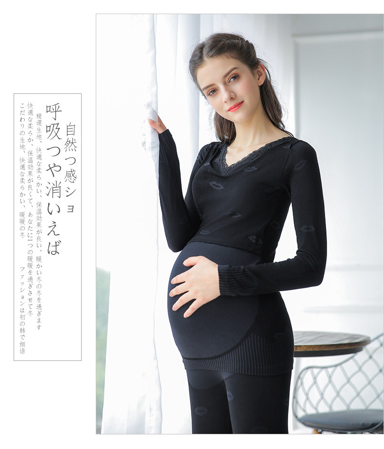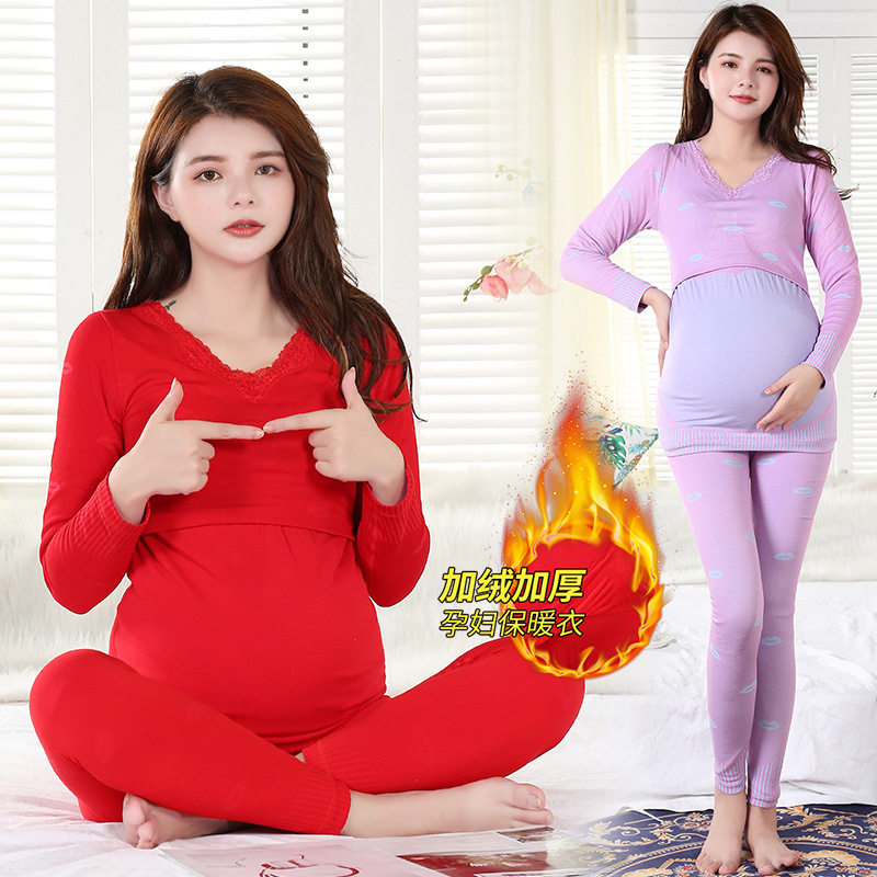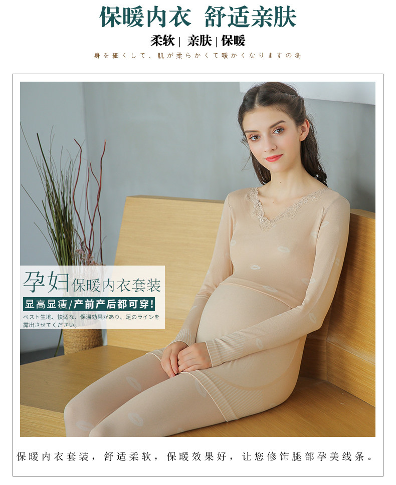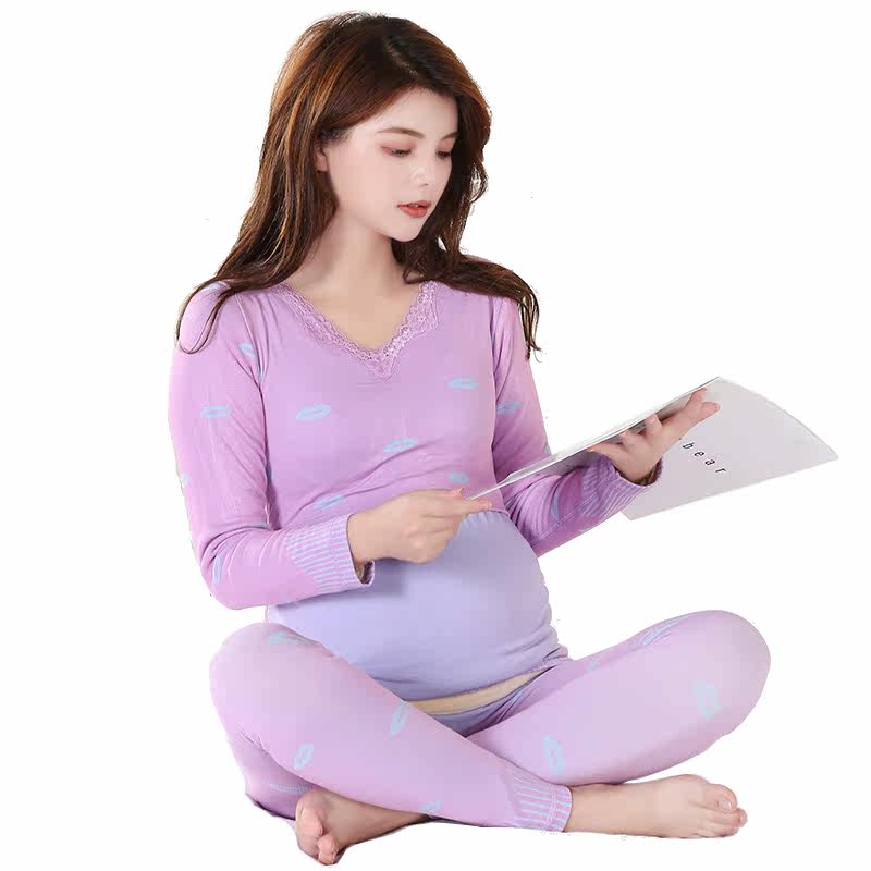 Удерживающее тепло нижнее белье для беременных, комплект, осеннее термобелье, базовые приятные телу штаны для кормящих грудью