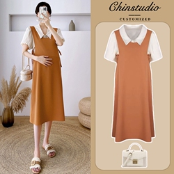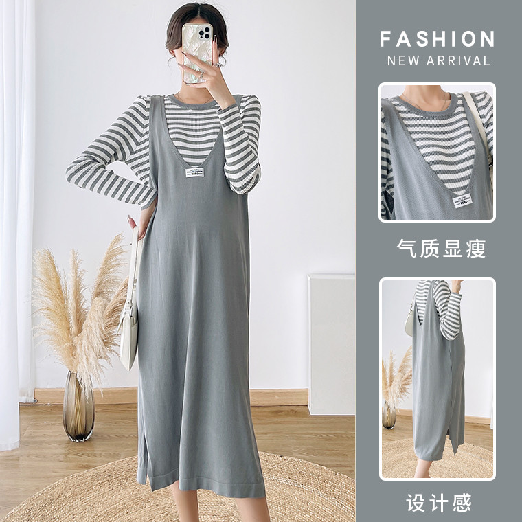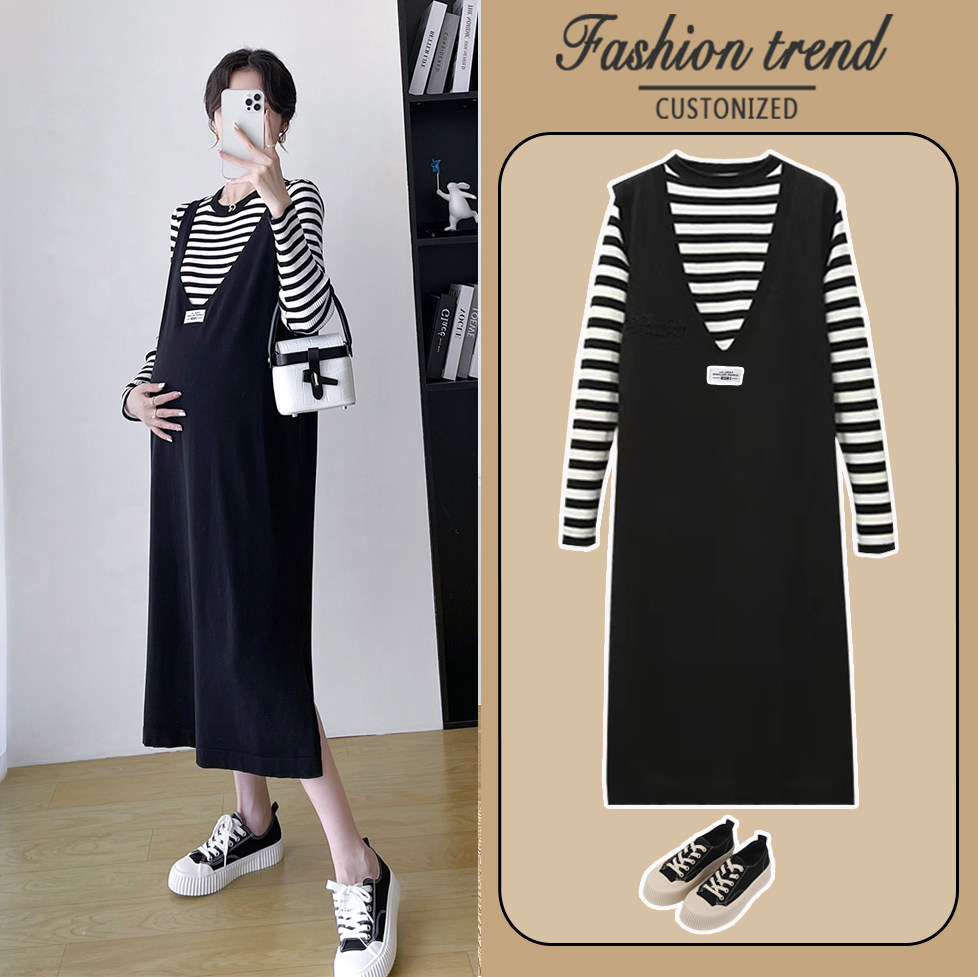 Термобелье, модное платье для беременных, приталенный комплект, длинная юбка, коллекция 2022, осеннее, изысканный стиль