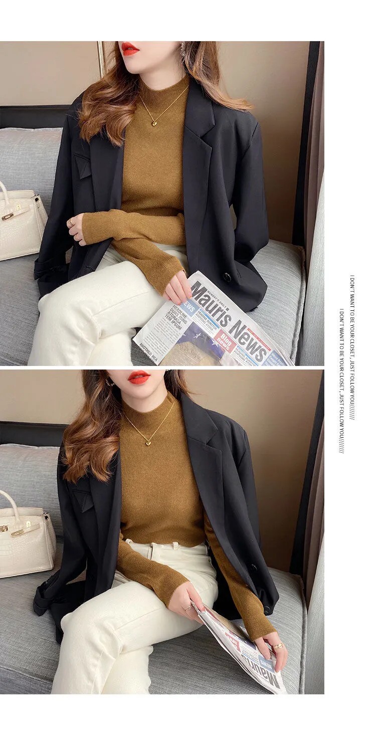 Демисезонное термобелье, трикотажный свитер, базовый лонгслив, коллекция 2022, высокий воротник, в западном стиле, облегающий крой