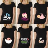 Черная рубашка для беременности материнство милое детское принт o-eck short