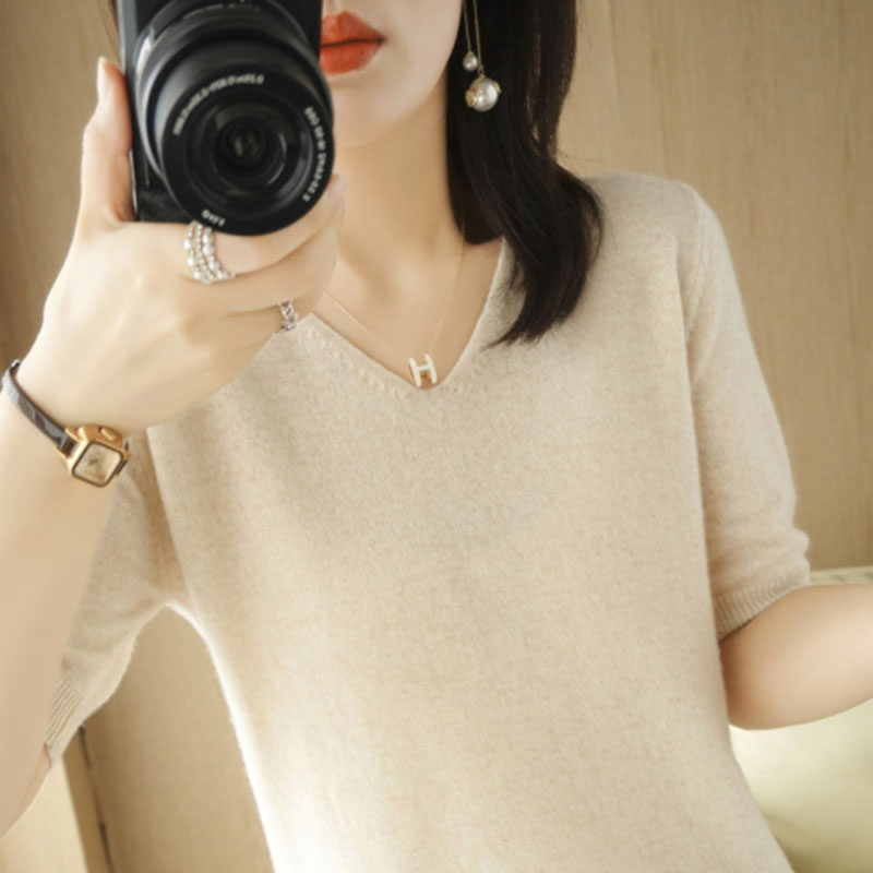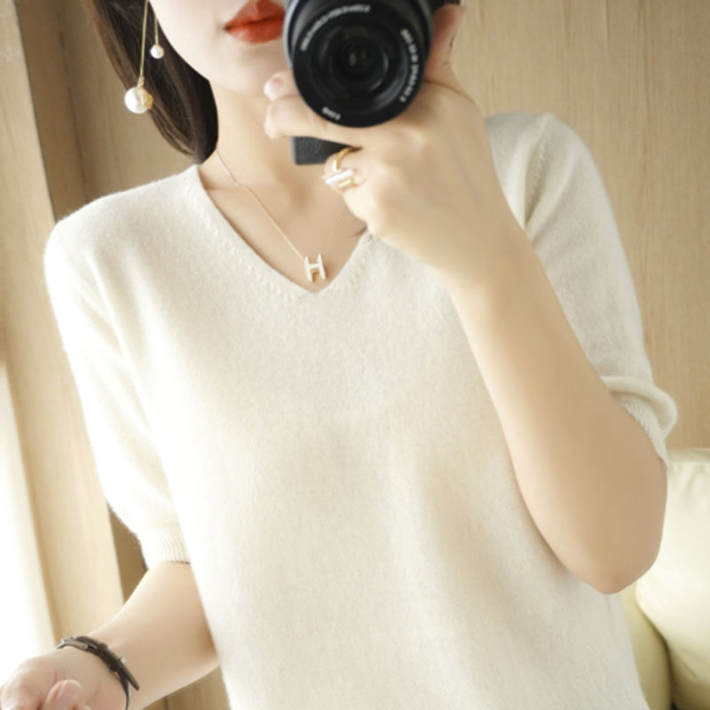 Весеннее лето Женщины Свитеры короткие рукава v -лек в дне