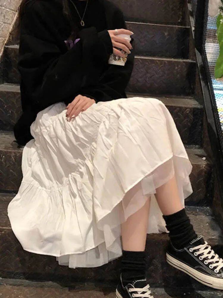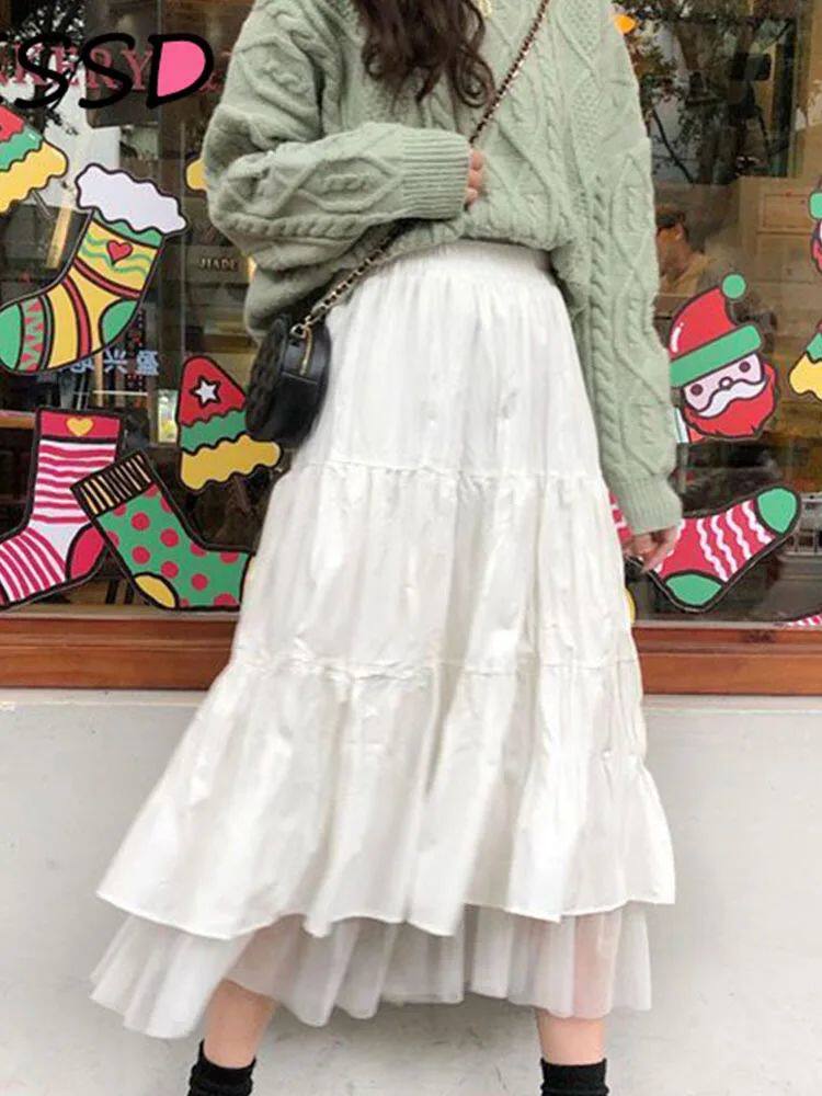 Длинные тюлевые юбки-миди женские, осень 2023, эластичная высокая талия
