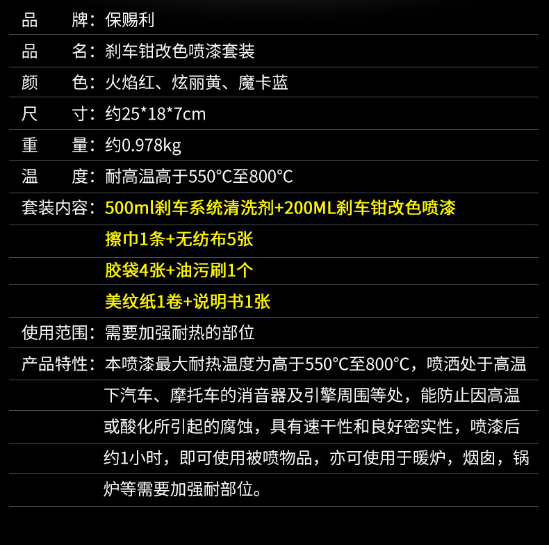 | Цвет: | Совет: вы также можете снять модель, весь автомобиль распространен, [1] Flame Red-800 ℃ Color Swittit, [2] ослепительный желтый-800 ℃ Краска с изменением цвета., 【3】 Magic Card Blue-800 ° C Clofitued Catched Краска 4 кусочки установки, [4] Чистящий набор плоскостей тормоза (включая протирку+масляная кисть), [5] Flame Red High -Temperatature Spray Paint+Chileaing Agent (всего семь штук), [6] Ослепительный желтый высокопроизводительный брызговик+для очистки тормозов (всего семь штук), [7] Волшебная карта Синяя высокотемпературная краска с высокой температурой+агент по очистке тормоза (всего семь штук) |