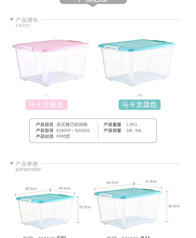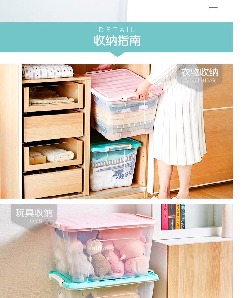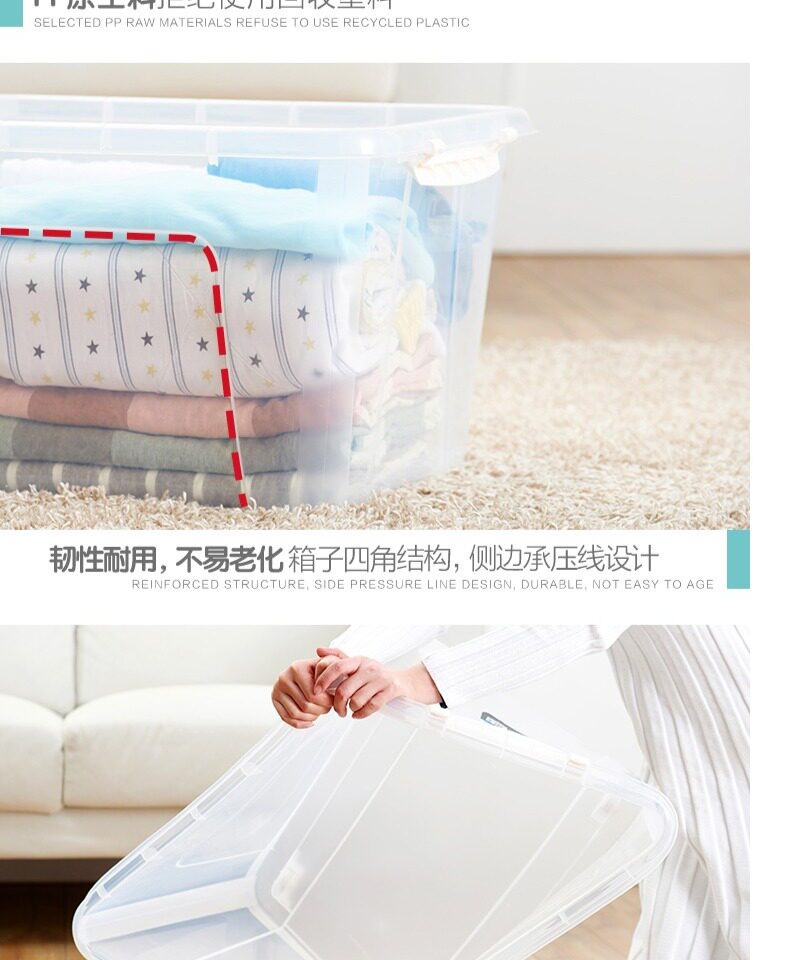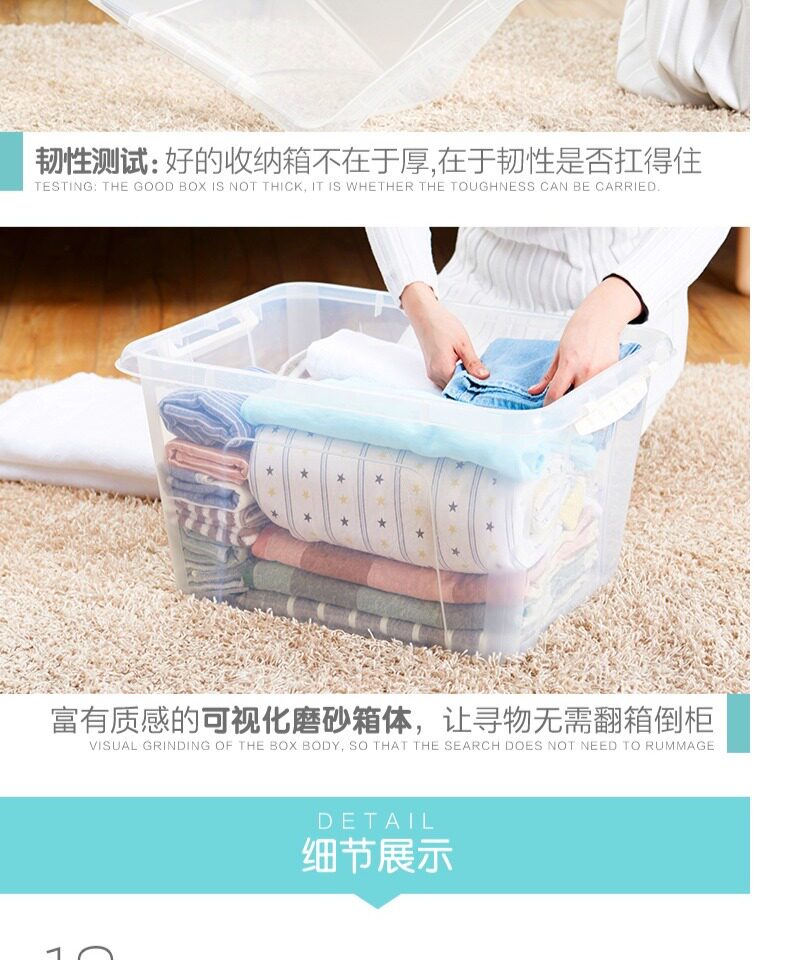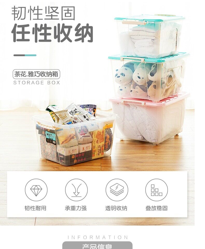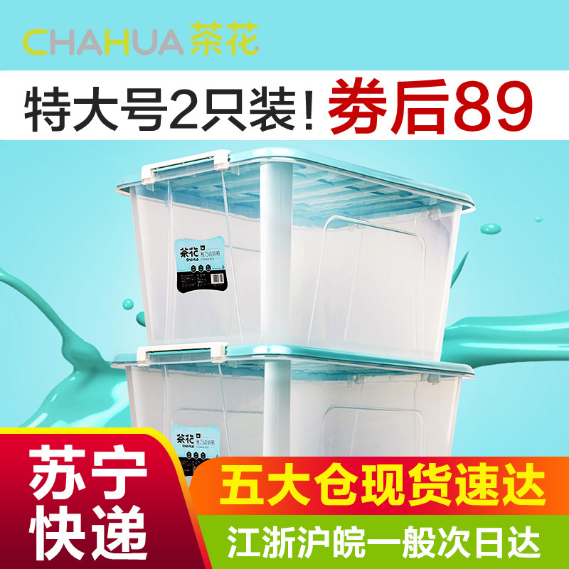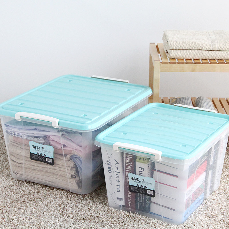 茶花 Пластиковый прозрачный большой ящик для хранения, очень большая коробочка для хранения, большая коробка для хранения, увеличенная толщина
