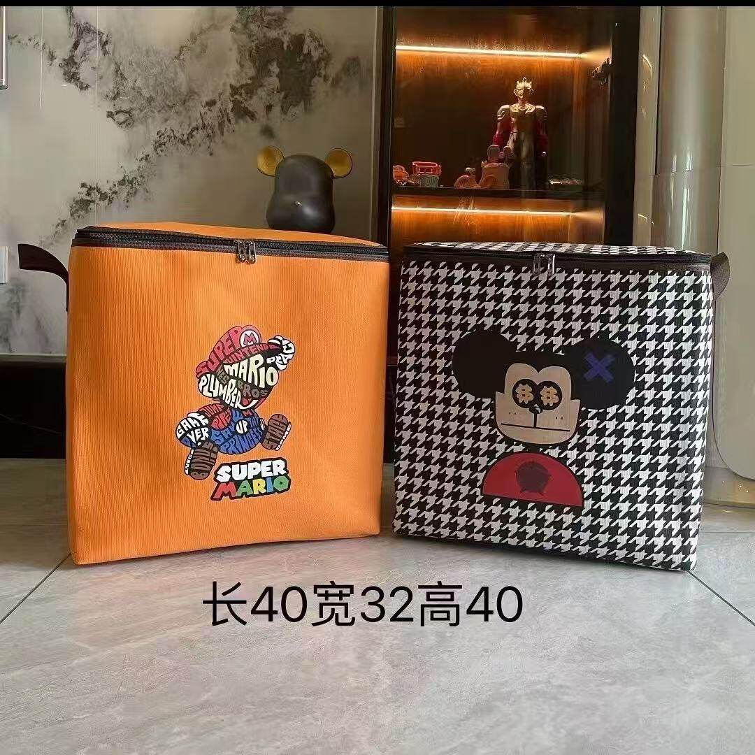 Детский ящик для хранения с молнией, коробочка для хранения для переезда, мультяшная ткань, сумка для хранения, увеличенная толщина