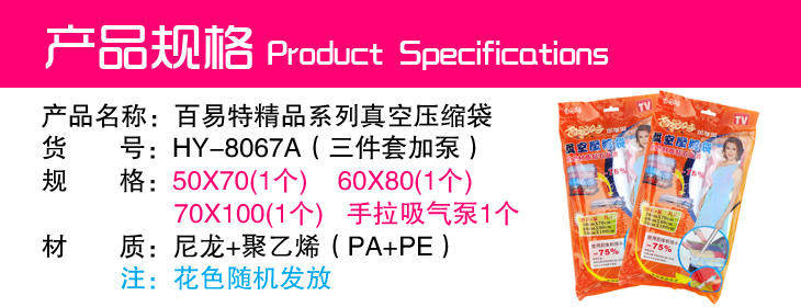 Часто ли вам кажется, что дома негде хранить одежду, особенно большие одеяла зимой? Хранить их — настоящая головная боль.В современных домах важен каждый дюйм, но неиспользованные одеяла и зимние пальто занимают много места в шкафу, что действительно нерентабельно.Вакуумные компрессионные мешки Kiao Fong используют уникальный принцип вакуума, позволяющий помещать в них одежду и одеяла и извлекать вакуум, мгновенно превращая вашу одежду и одеяла в форму.“худеть”, размер уменьшился до одной трети или одной пятой своего первоначального размера. У вас все еще болит голова, пытаясь их сохранить?!А использование вакуумных компрессионных пакетов может предотвратить появление влаги, плесени и моли — одежду и одеяла можно хранить за один прием.Вакуумно-компрессионные пакеты уже давно популярны за рубежом, и практически в каждом доме имеется такой набор. Чего вы ждете?
