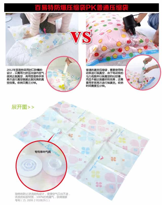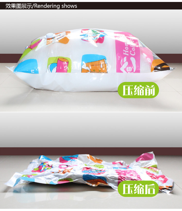 Вакуумные компрессионные пакеты в основном используются для хранения одеял и одежды. Поместив одежду и одеяла в вакуумный мешок, закройте горловину мешка слайдом, а затем используйте пылесос или трубку для вытяжки воздуха, чтобы удалить воздух, или вручную прокрутите воздух, чтобы удалить воздух, чтобы одежда и одеяла сжимались.Воздух не будет течь обратно после сжатия, сохраняя мешок в состоянии низкого вакуума.Поскольку внутренняя часть сумки находится в вакуумном состоянии, она защищена от насекомых, влаги, запаха, плесени и т. д., полностью защищая вашу одежду и увеличивая пространство для хранения в 2-3 раза!Его основные материалы: ПЭ, ПЭ+ПЭТ, ПЭ+ПА.
