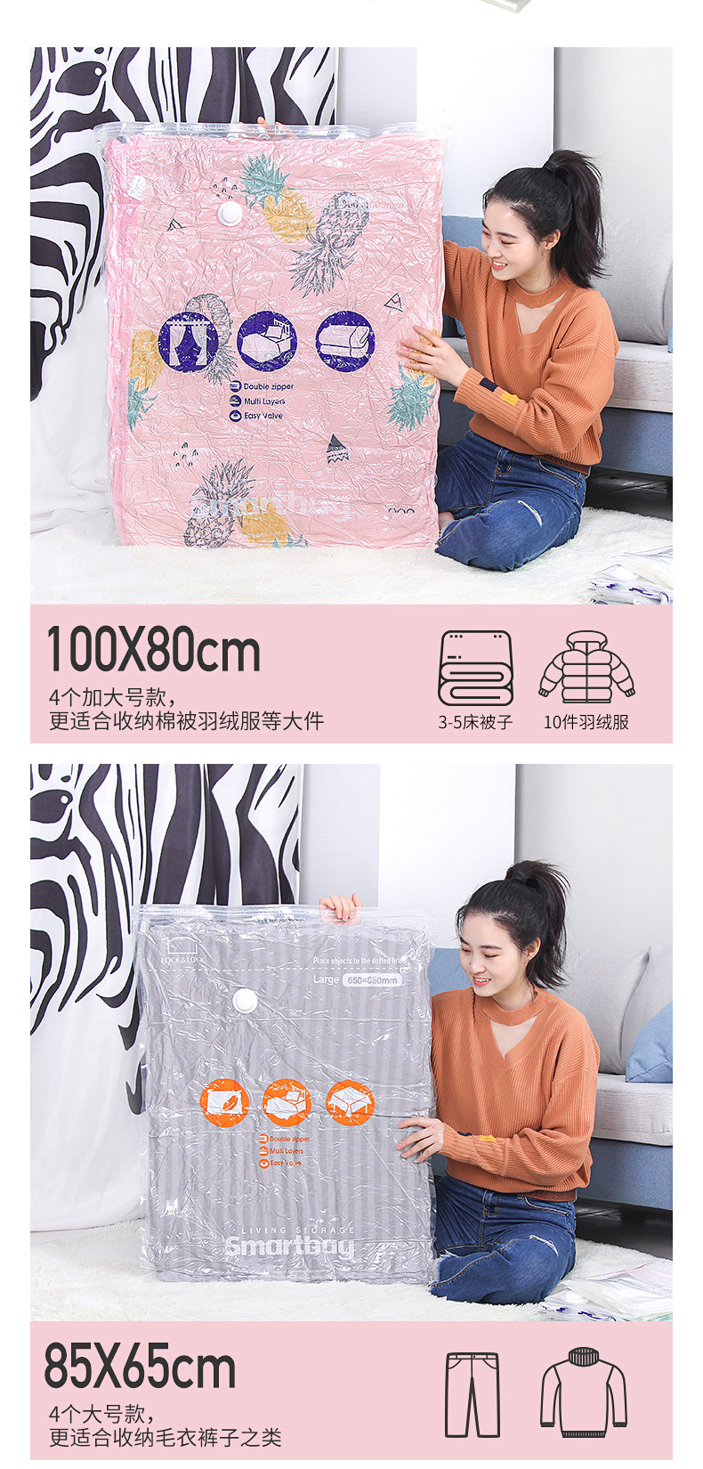Вакуумная сумка для хранения, одеяло, большой комплект, увеличенная толщина, 12 шт
