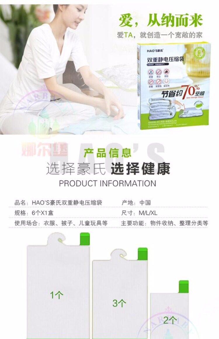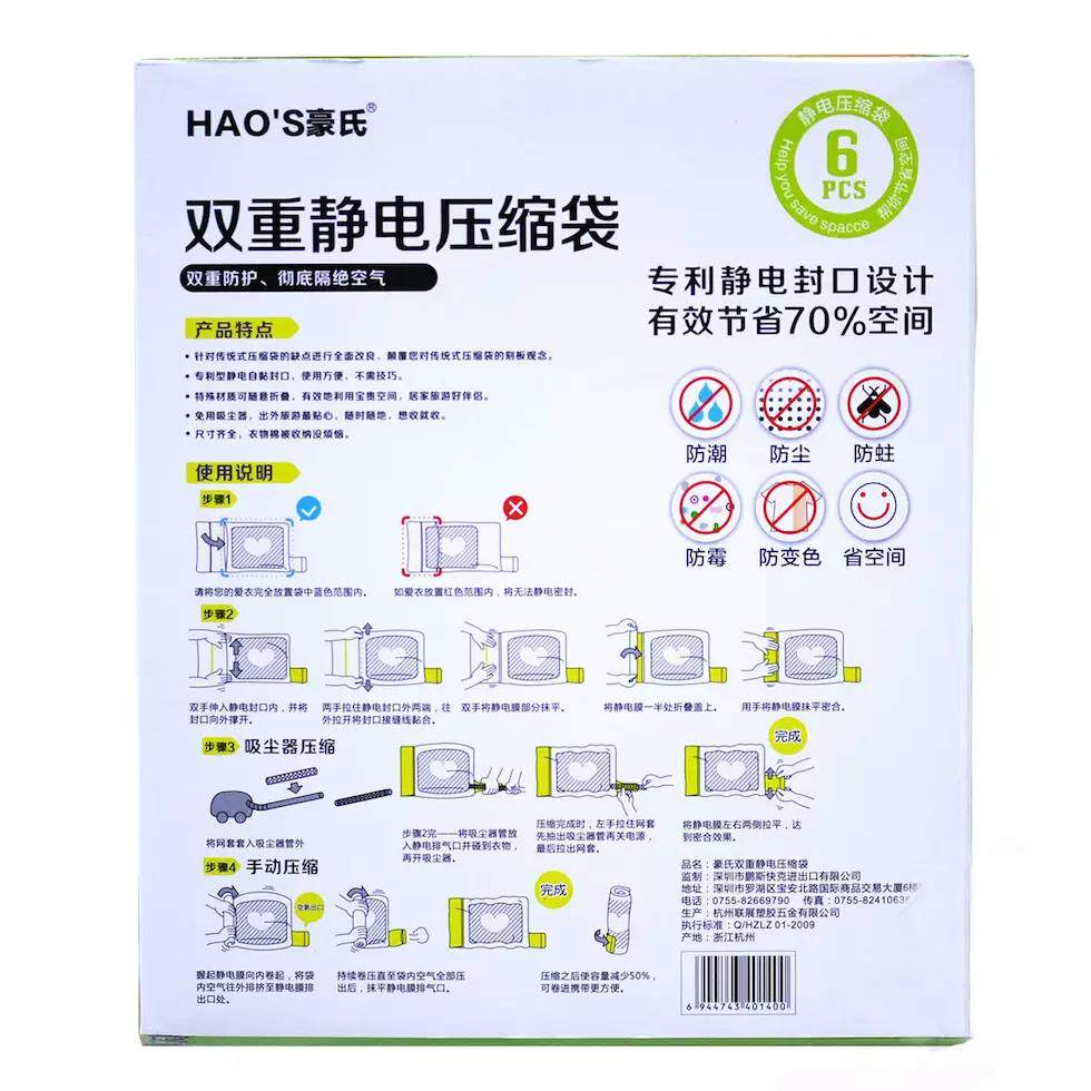 Двойная статическая статическая статическая сжательная сумка Хао 6 м*2 л*3 xl*1 Статическое электрическое самоадгезив