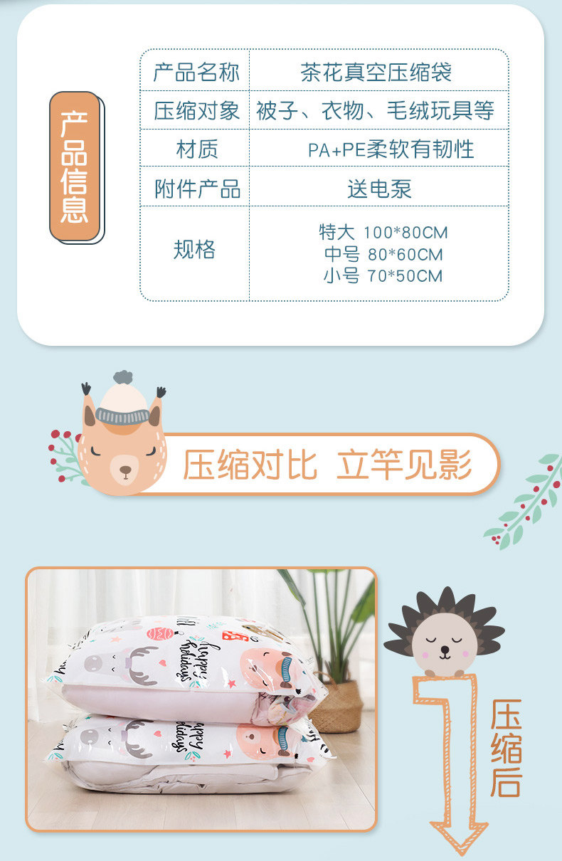 茶花 Вакуумная система хранения, большое одеяло, сумка для хранения, постельные принадлежности