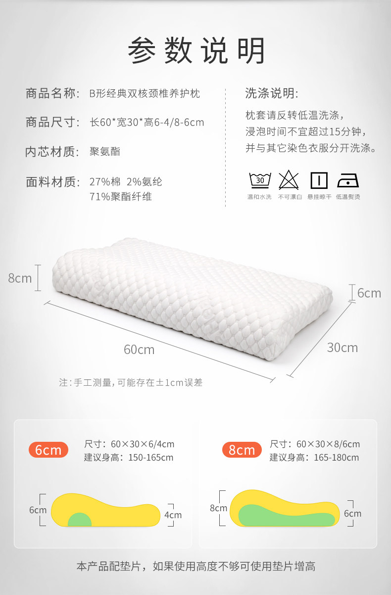 Bihe Chhe Chaherical Spine Подушка спит домой медленно к космической памяти хлопок дома низкая подушка для одиночного сна подушка