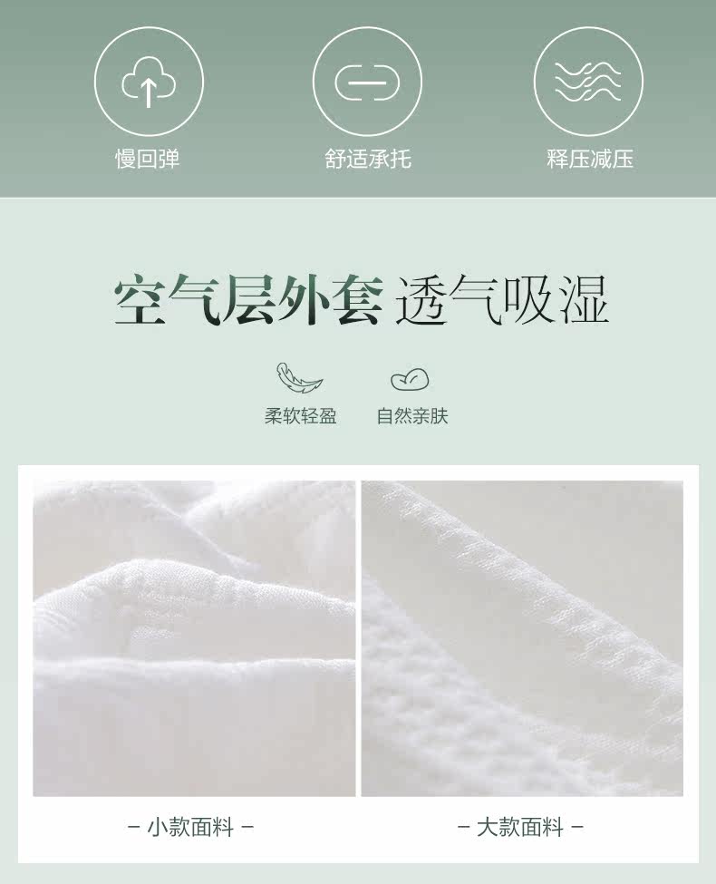 Содержание компонентов продукта | Mengyun-Состав ткани:Верхний слой: 100%липкий волокно средний и нижний слой: 100%полиэфирное волокно Заполнить композицию: 100%медленный восстановление мягкого полиуретана / SHUОблачная композиция:100% полиэфирное волокно | ||
