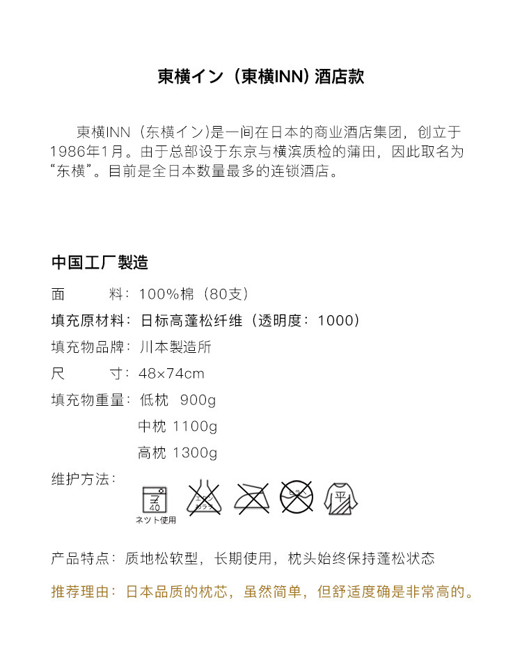 - [立体枕一只 900克/48*74cm 低枕]