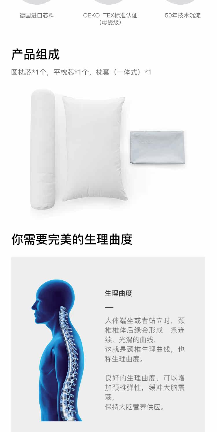 淘宝心选 Немецкая волоконно -волоконно -шейная подушка позвоночника Цилиндрическая твердая подушка с твердой шеей с односполучающей подушкой ядра для дома копа