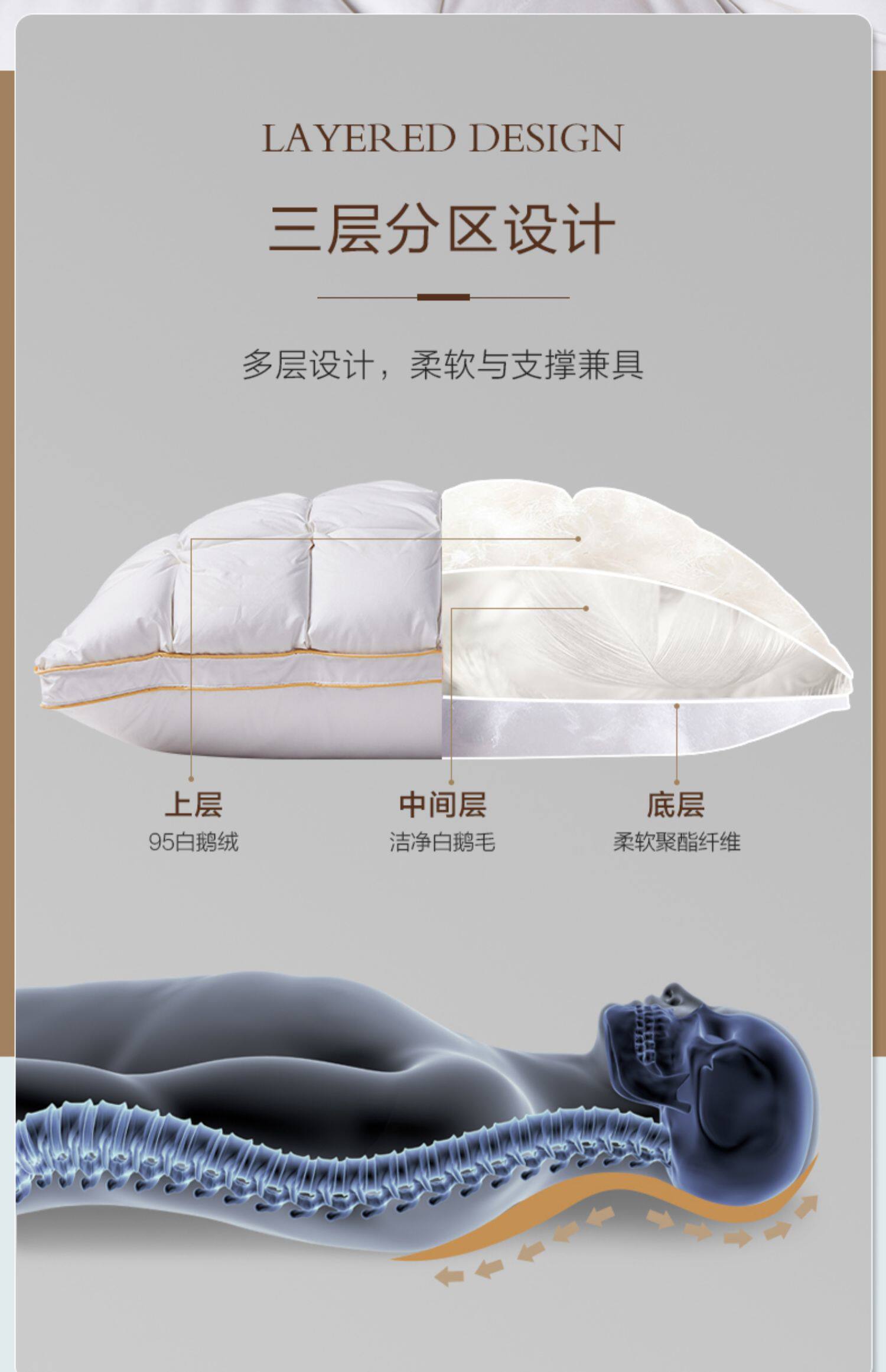 博洋 Plel Pillow 95 White Gose Velvet Five -Star Hotel Одинокий одноразовый шейный позвоночник Sleep Sleeor мягкий