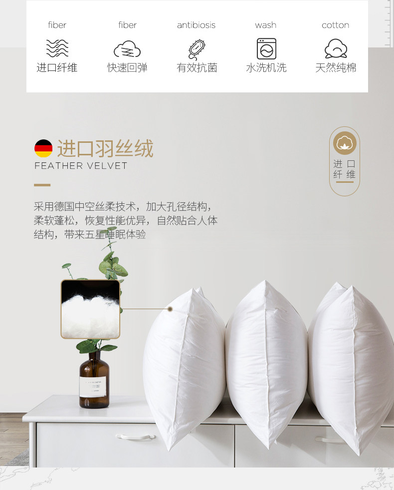 Германия импортированное волокно пятизвездочное отель подушка подушка ядро пара подушек бытовые шейки матки, борьба с одиночной подушкой, одиночная подушка