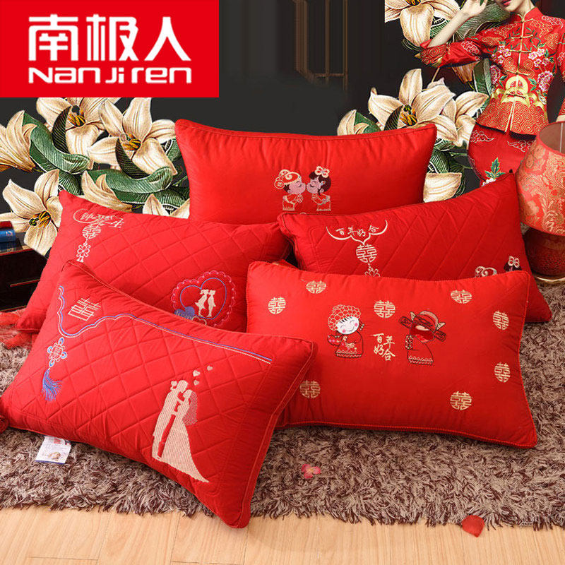 - Большая красная свадебная шелковая подушка с перьями-H для двоих влюбленных [набор пар]