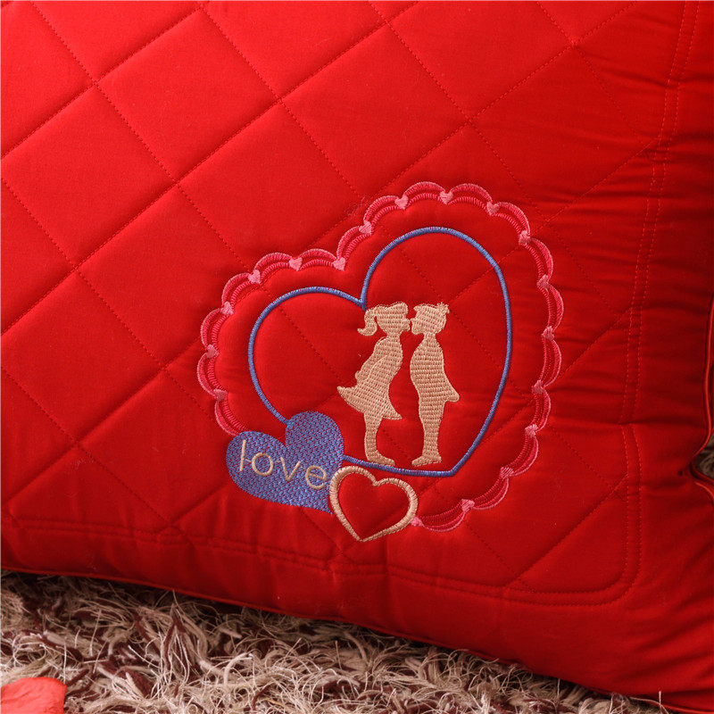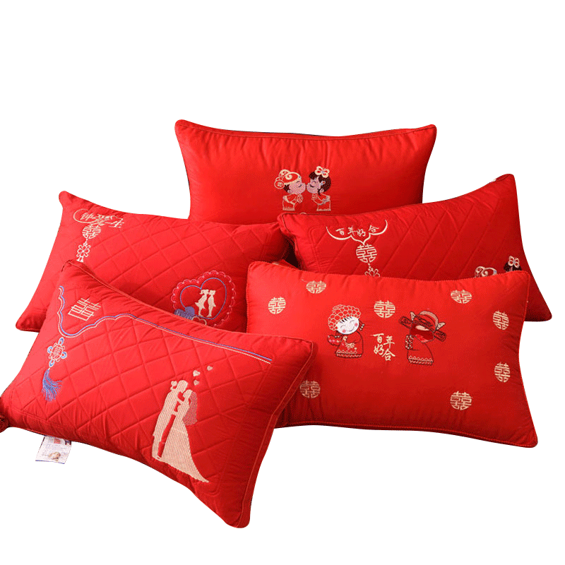 - Большая красная свадебная шелковая подушка с перьями-H Perfect Marriage [набор пар]
