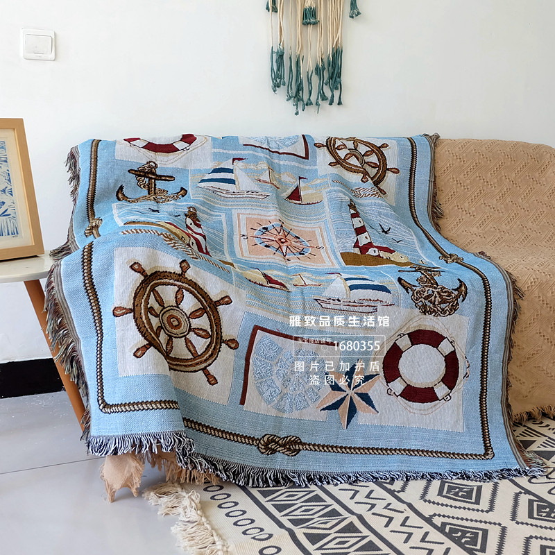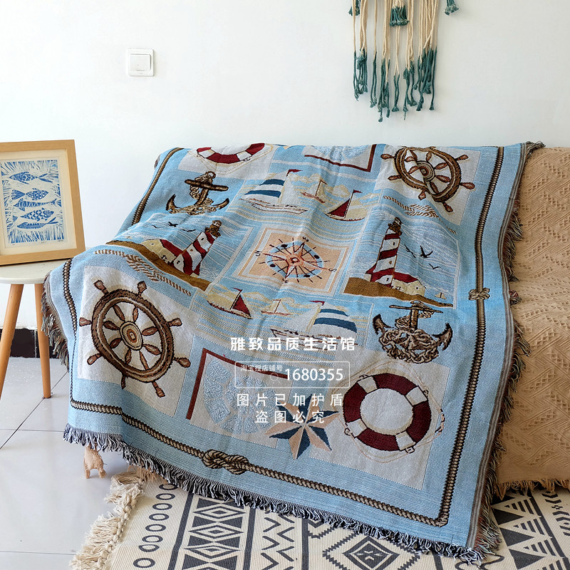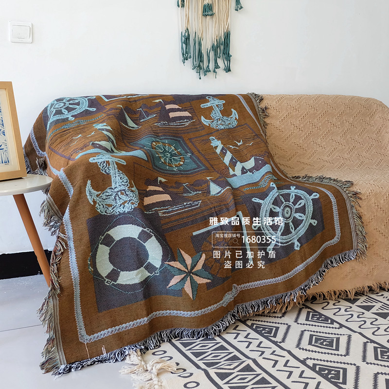 Внешняя торговля скандинавской средиземноморской кусочкой валовой и льняной тканой диван -диван -шарф, покрытой грубым вращающим