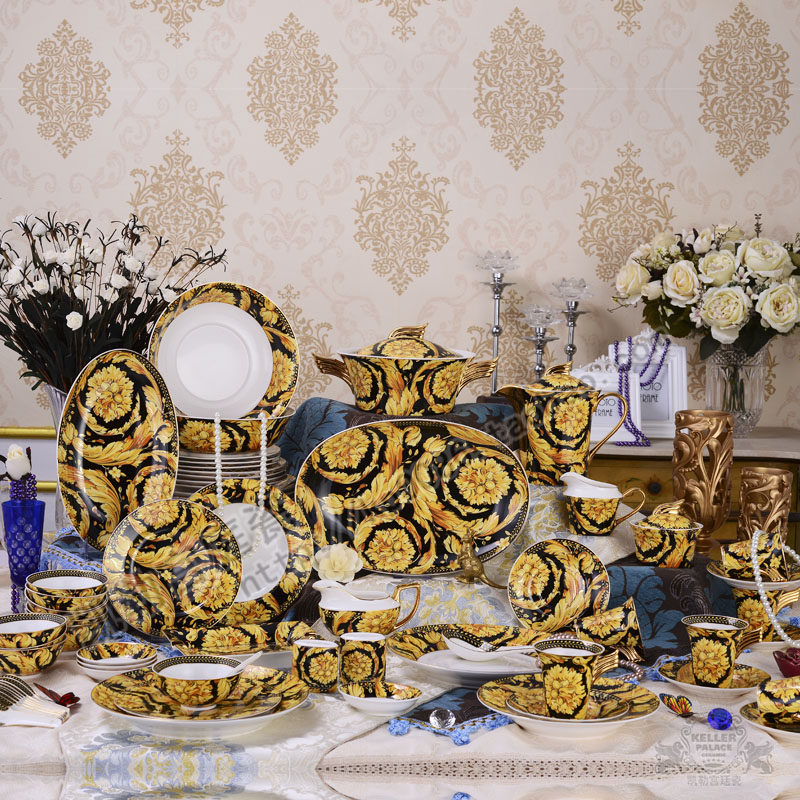 Бесплатная доставка Европейская роскошная тщеславие костяная костяная посуда 70 керамическая западная посуда китайская столовая чаша для кусочки Spoon Coffee