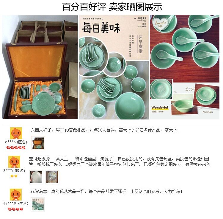 Longquan Celadon 28/58 фарфоровой посуды, набор домашнего дискового костюма для домашнего чаша