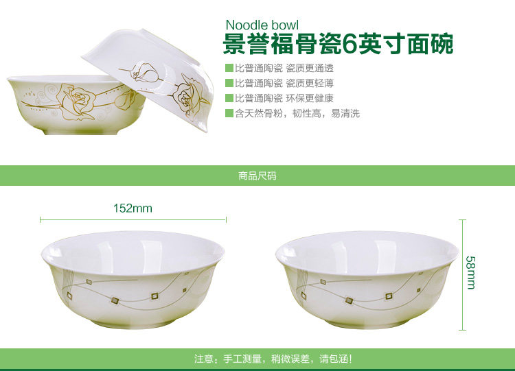 Jingyufu 6 -inch inch noodle bowl gindezhen bone foarcal dablain dableade dowe bowl soup bow