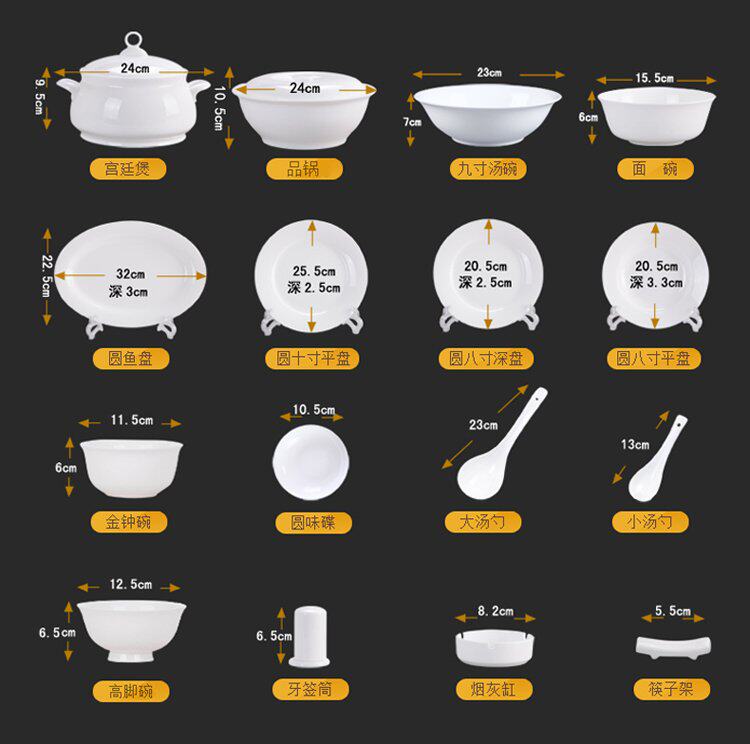 | Цвет: | 8 -Icint Soup Plate 2, 4,5 дюйма высотой рисовая чаша 10, 4,5 дюйма золотого колокола рис 10, 28 чашки, 56 -Стандартная табличная посуда на конфигурации Standard Pot, 1 горшок, 1 Гонг -ян горшок, 1 12 -INCH FISH PLATE, 6 -дюймовая чаша для лапши 6, 1 9 -INCH SUPELOW 1, 56 Стандартная табличная посуда конфигурации суда |