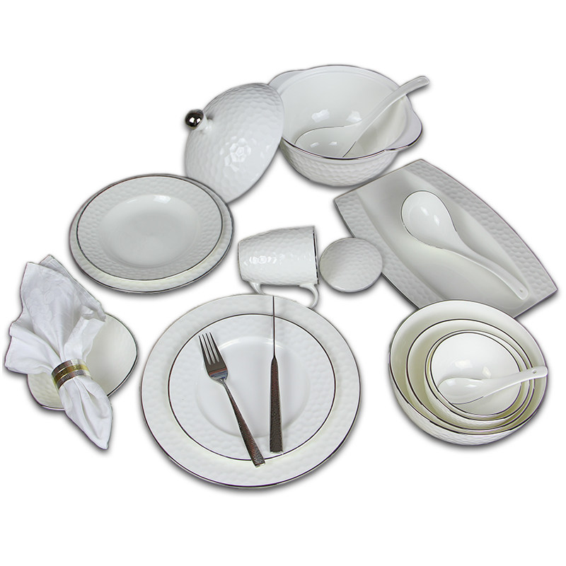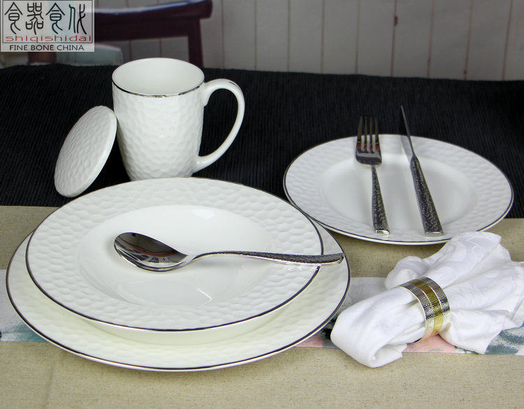 Джинпайский костяной фарфоровый фарфоровый пластинку с плоской головкой Простой серебряный край западный диск, северный ветровой рельеф, бычий стейк Западный набор посуды