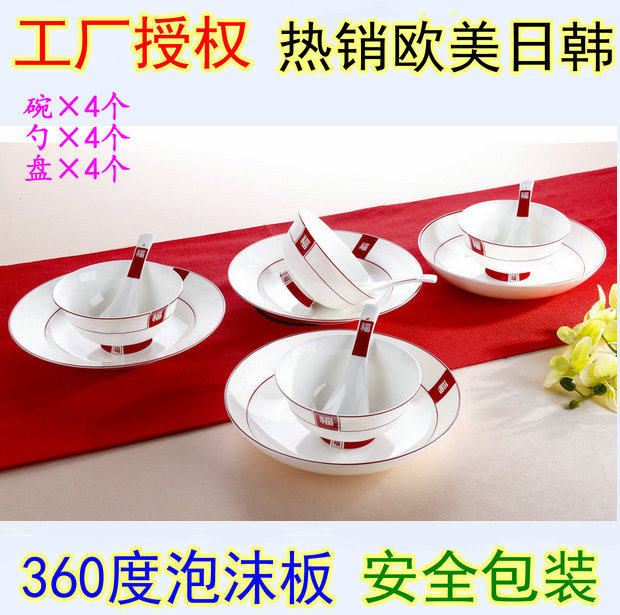 Duocai 12 Череп Фарфоровой Набор посуда 4 человека используют китайский остеопорфический фарфоровый рисовый рисовый рис.
