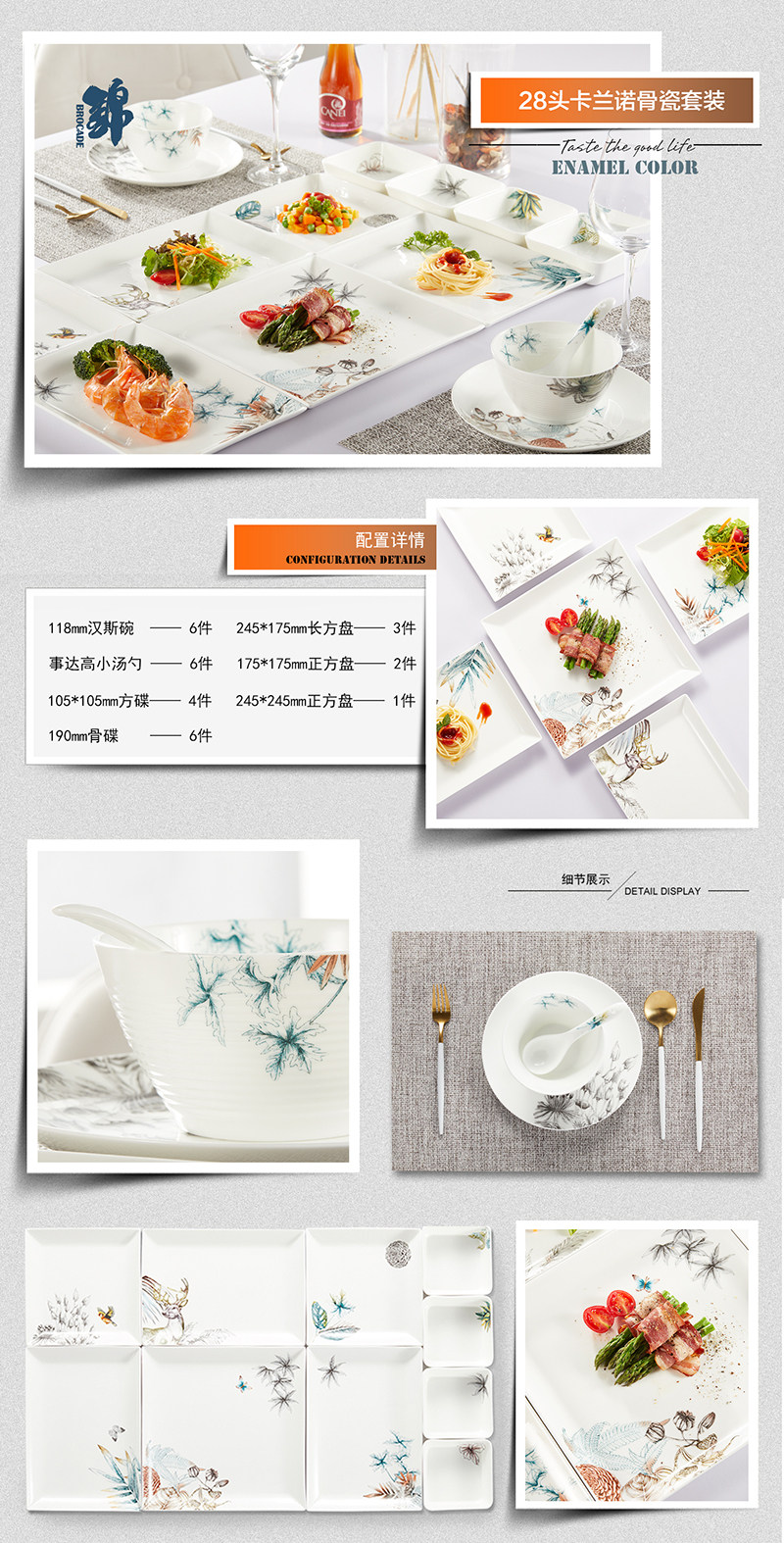 Посуда, прямоугольный керамический комплект, простой и элегантный дизайн, европейский стиль, подарок на день рождения