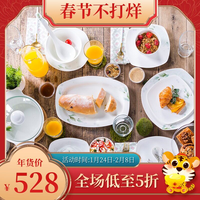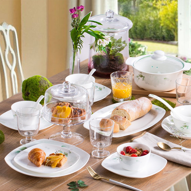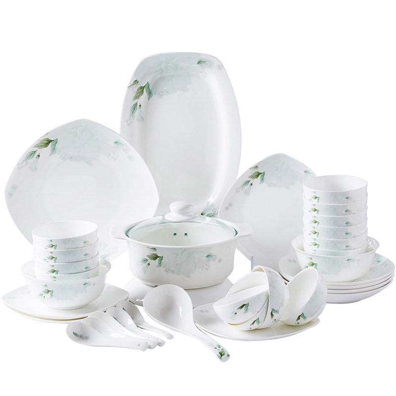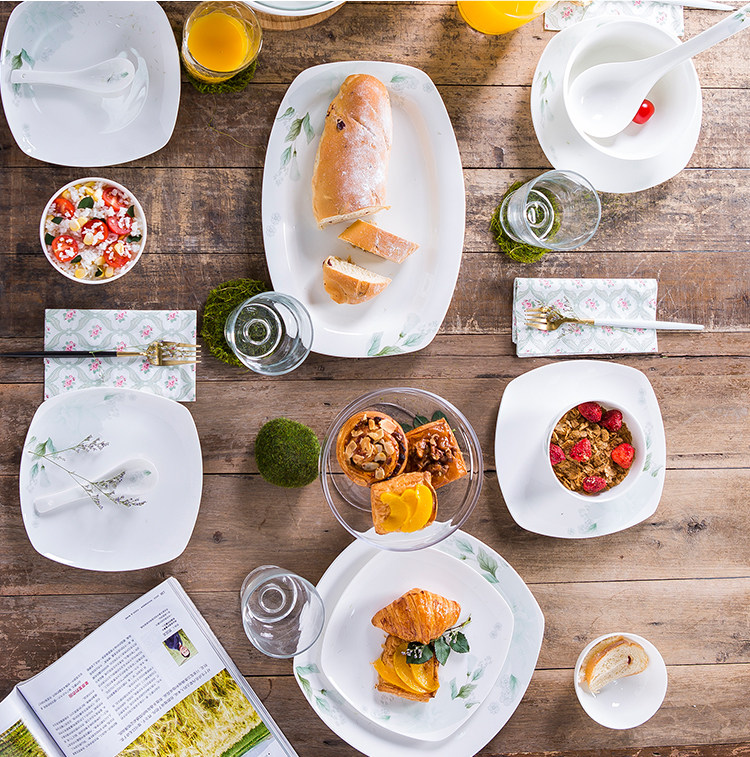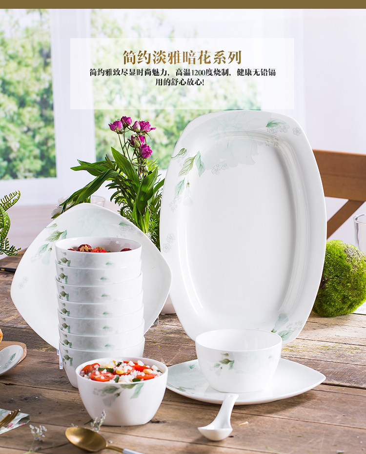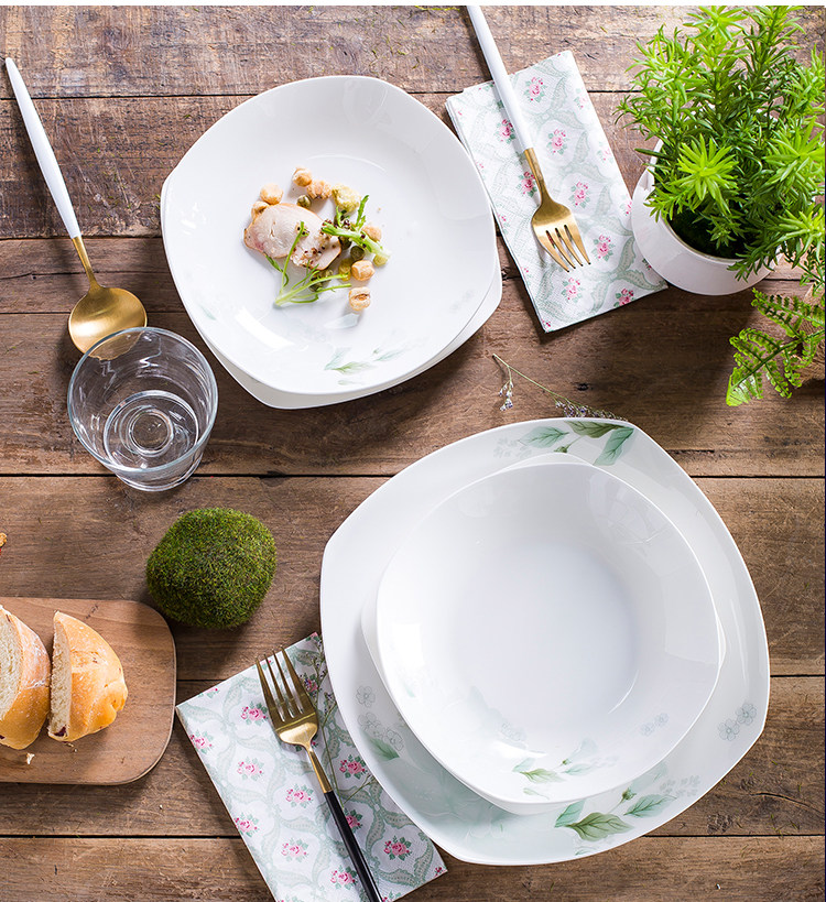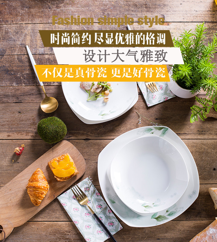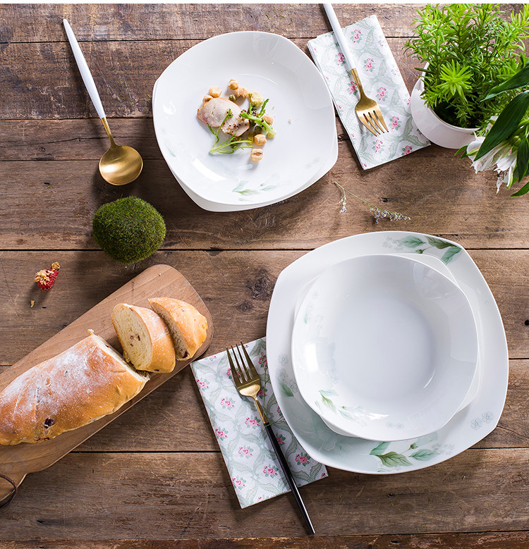 Керамическая посуда, квадратный комплект, простой и элегантный дизайн, китайский стиль