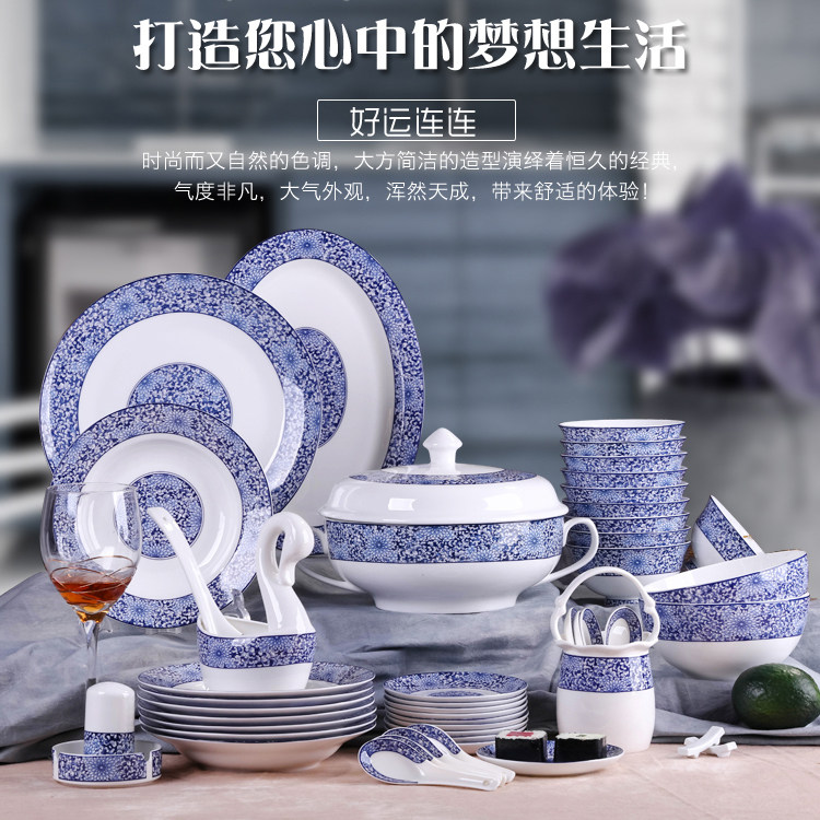 景德镇 Посуда, керамический фарфоровый высококлассный комплект, подарок на день рождения