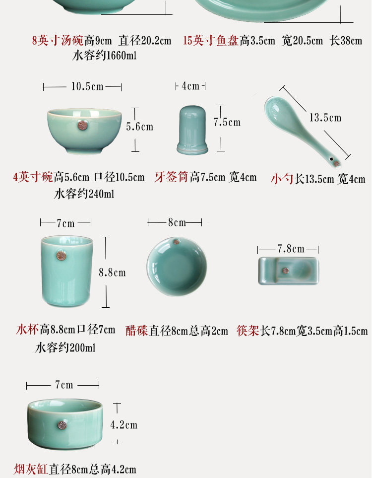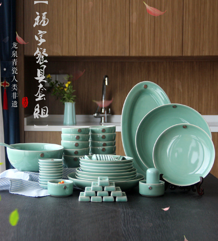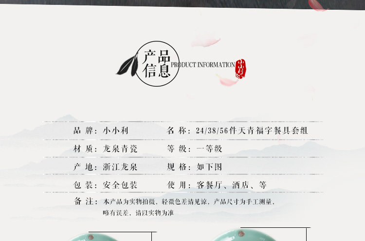 小小利 Посуда, керамический комплект, подарочная коробка, 38, 56 шт, китайский стиль