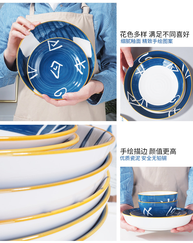 Японская посуда, керамический комплект, свежая обеденная тарелка, для влюбленных