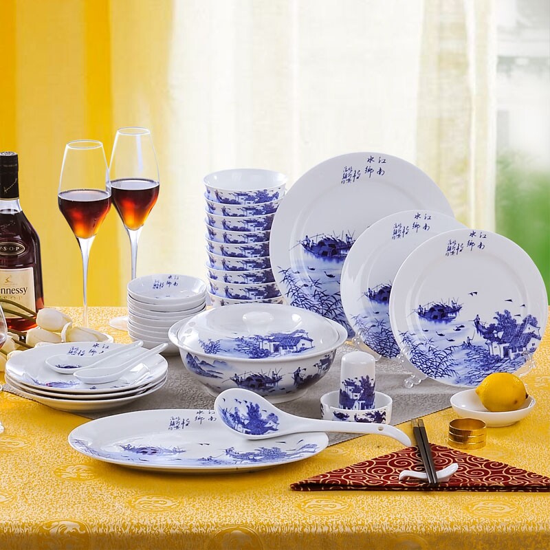 Jingdezhen 56 Череп фарфор Jiangnan Water Village Satware Set Set для новых свадебных подарков