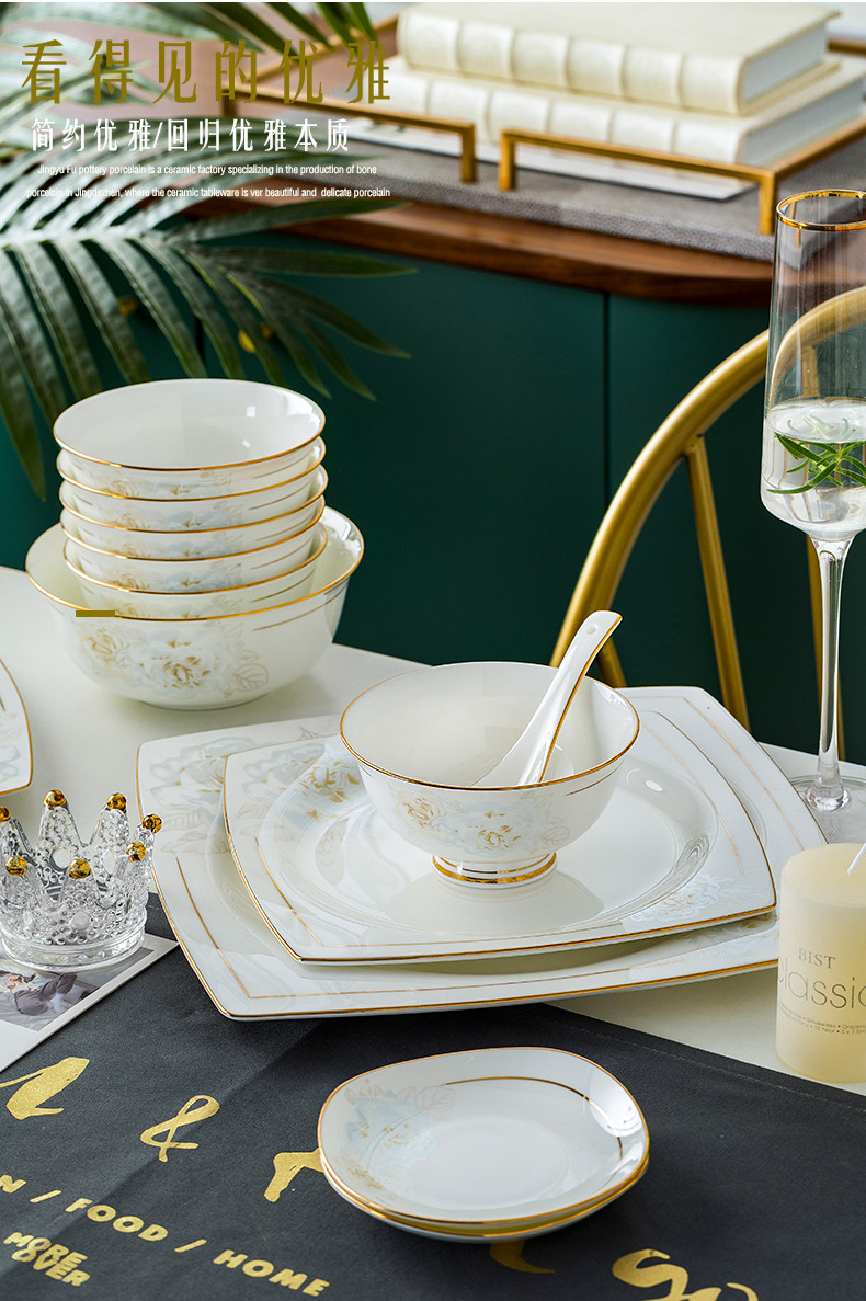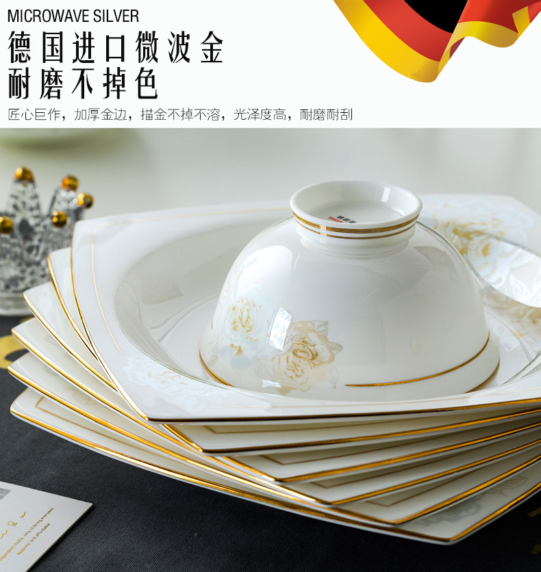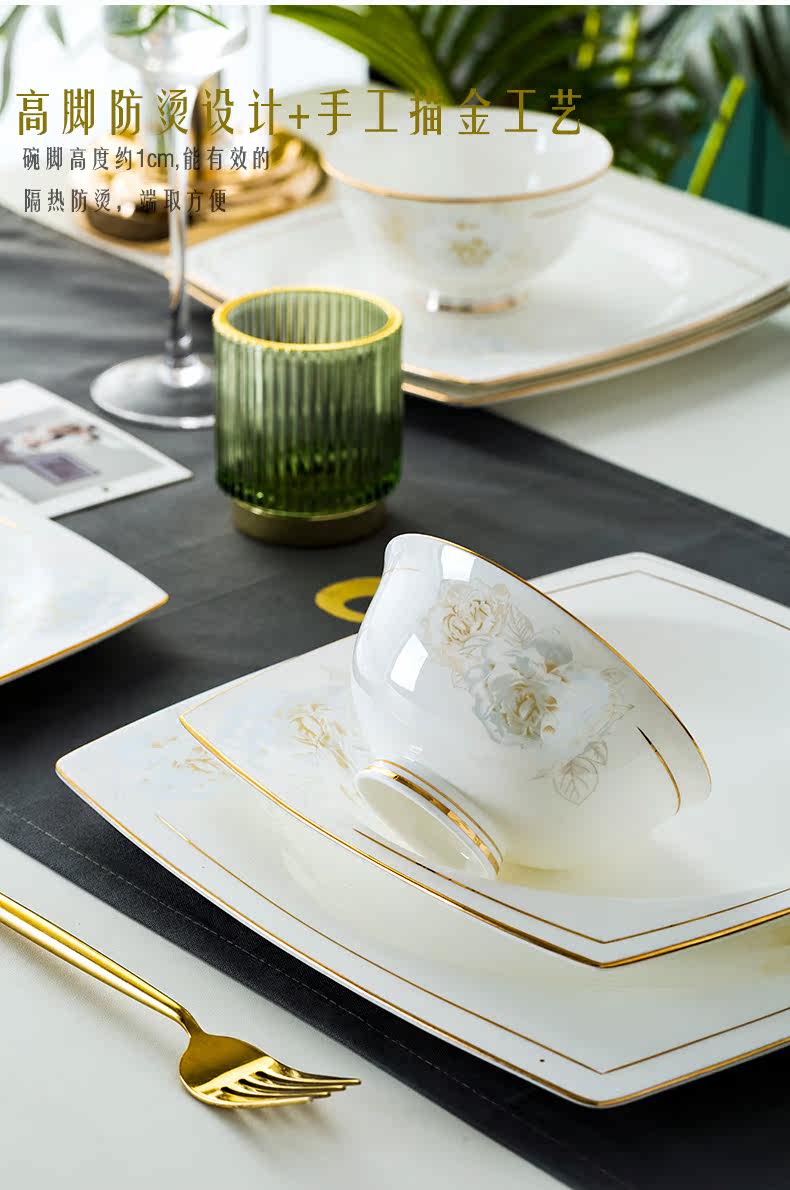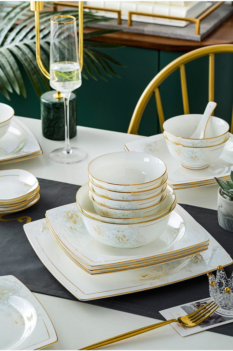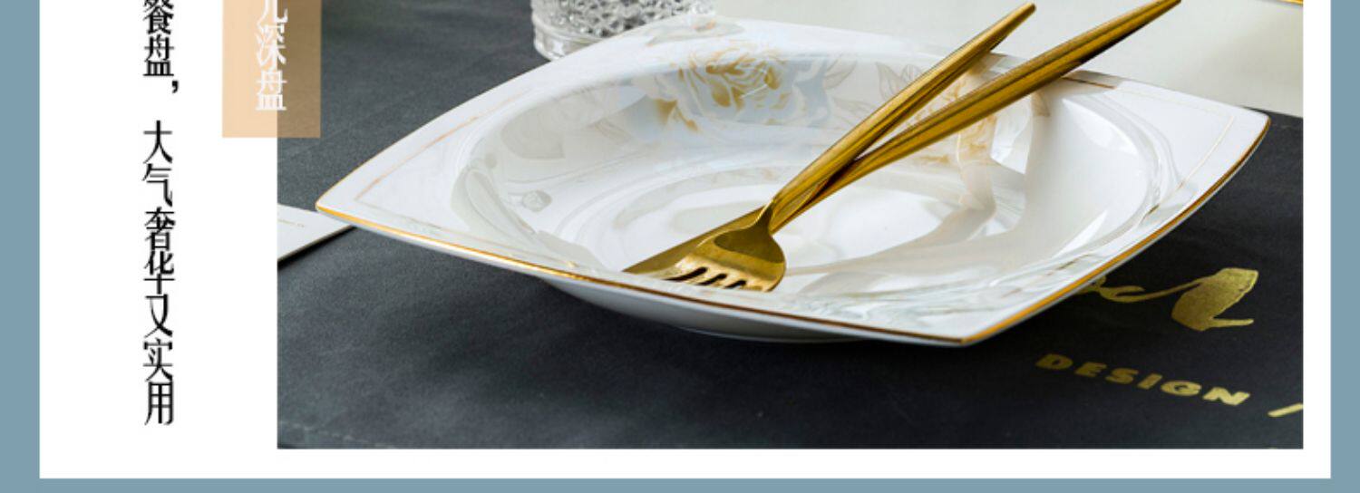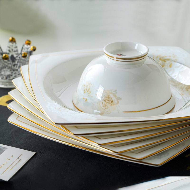 Джингджэнь керамическая посуда, костяная фарфоровая миска, набор роскошных западных в стиле дворца золотые домашние блюда и комбинация палочек для еды