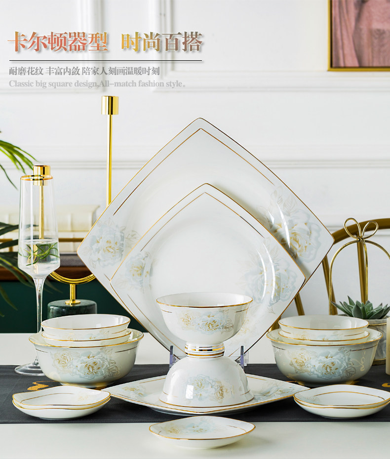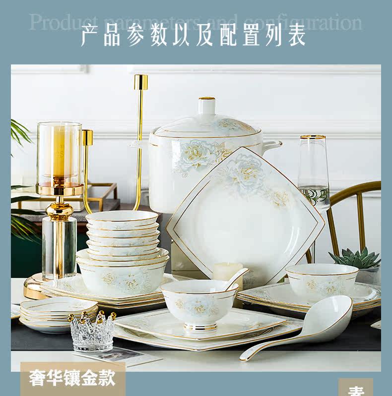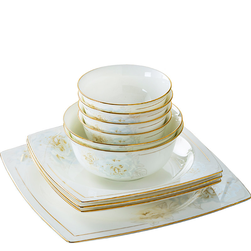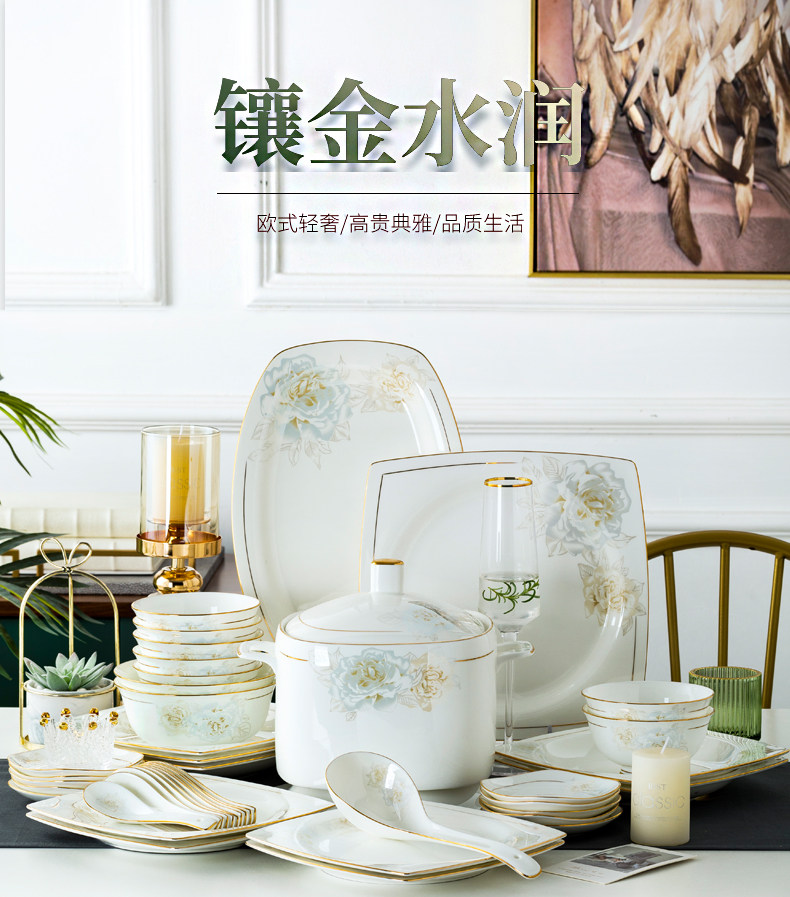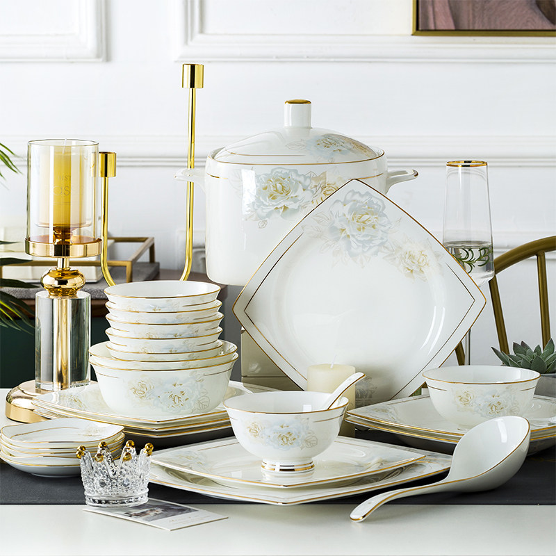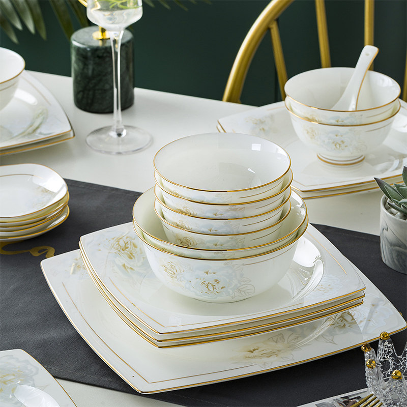Джингджэнь керамическая посуда, костяная фарфоровая миска, набор роскошных западных в стиле дворца золотые домашние блюда и комбинация палочек для еды