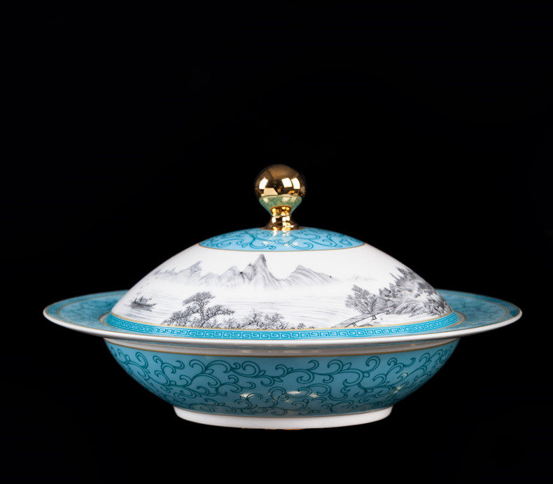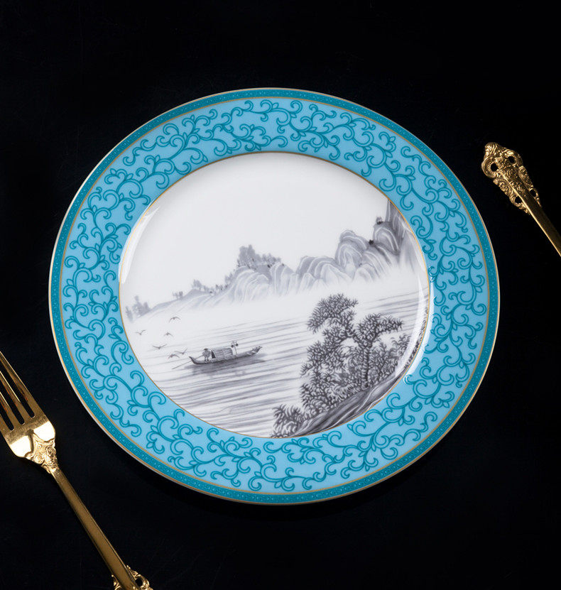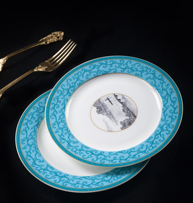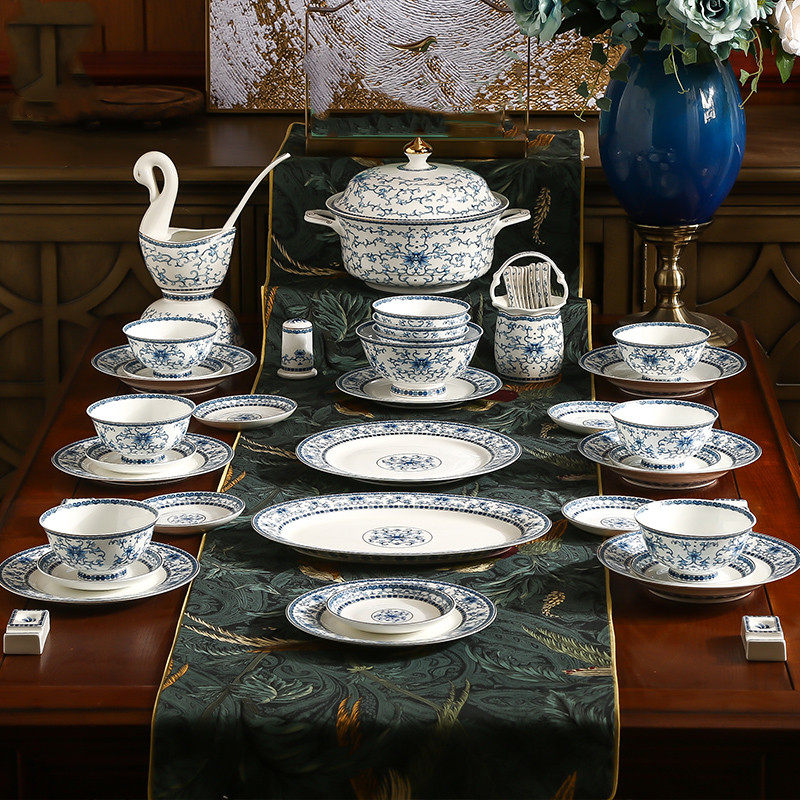 Высококлассная керамическая сине-белая эмаль, посуда, комплект, простой и элегантный дизайн, китайский стиль