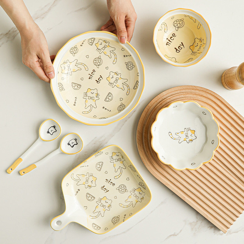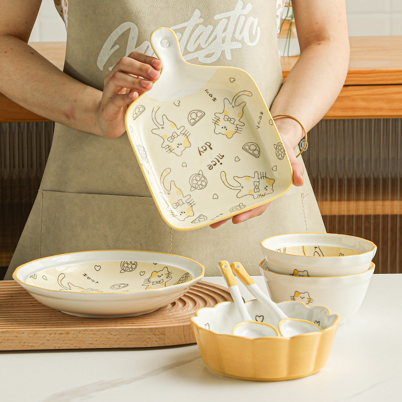 Посуда, керамический брендовый японский милый креативный комплект для домашнего использования для влюбленных