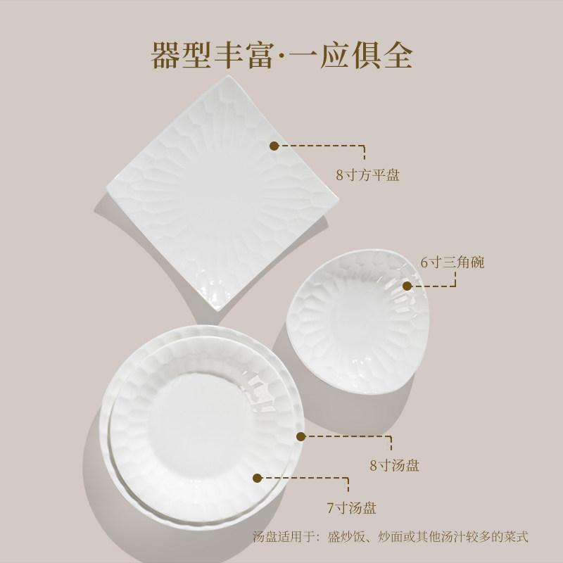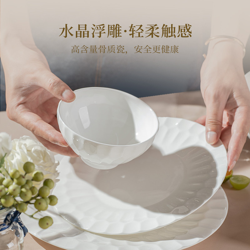 艾格恩 Кристаллическая костяная фарфоровая посуда наболенная посуда Light Роскошные домашние блюда комбинированная белая фарфоровая рельеф