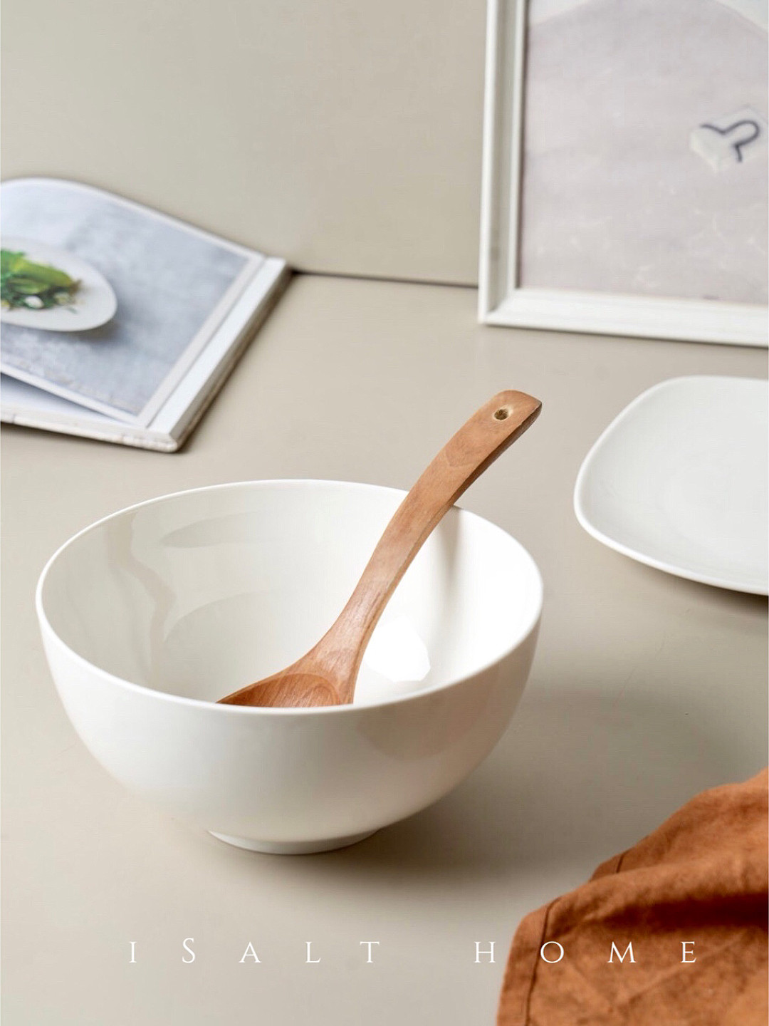 Ins белая большая миска 20 см, простая бытовая миска для овощей, миска для лапши быстрого приготовления, ресторанная большая тарелка для супа, миска для фруктового салата, высокий внешний вид