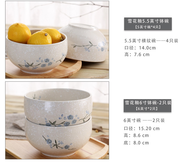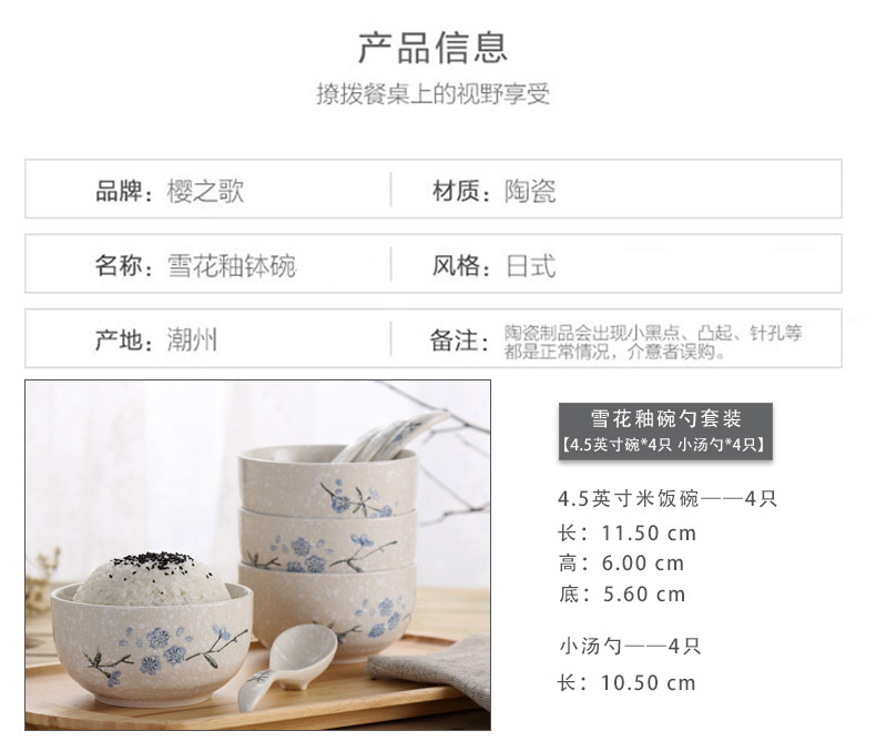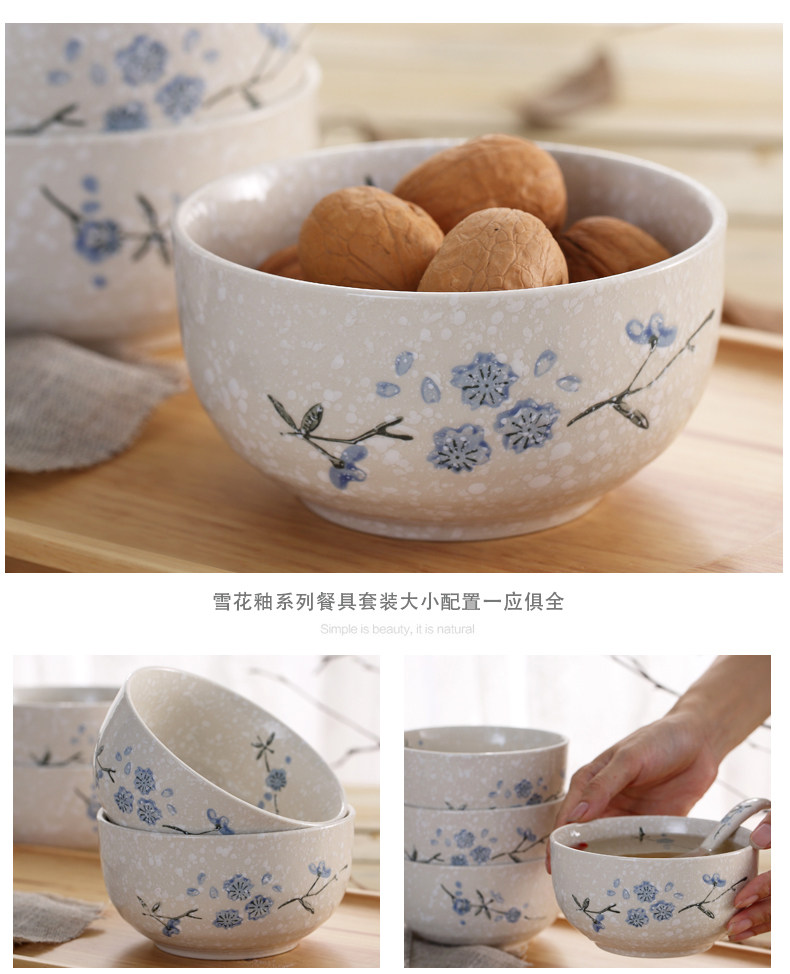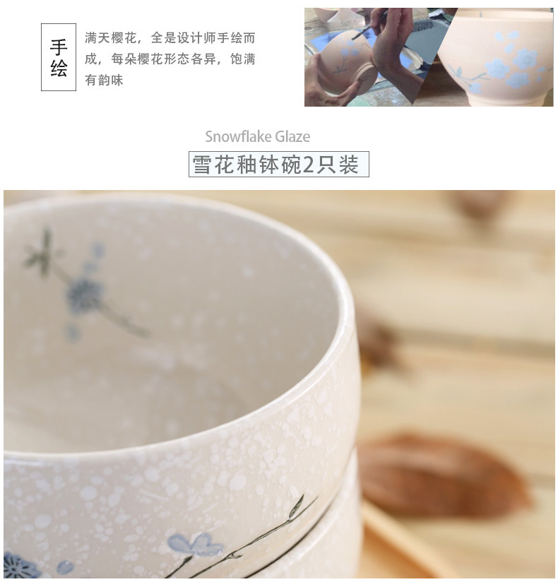 Сакура Японская снежная глазурь Домашнее 4,5-дюймовая посуда рисовая чаша набор керамическая миска с лапшой 5,5-дюймовая рисовая миска