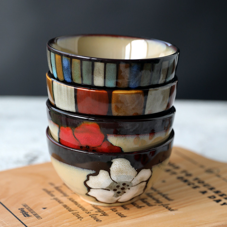 Креативная ручная керамическая печь превращает глазурь 4,5 -дюймовую рисовую чашу.