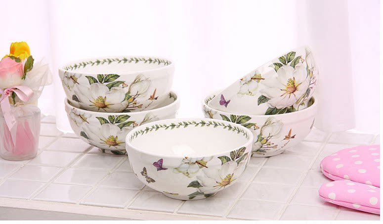 Название продукта: корейская импортная магнолия цветочная костяная костяная костяная посуда рисовая чаша